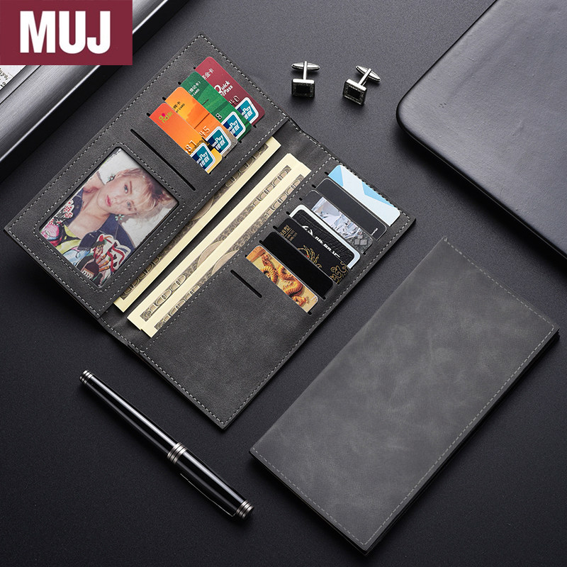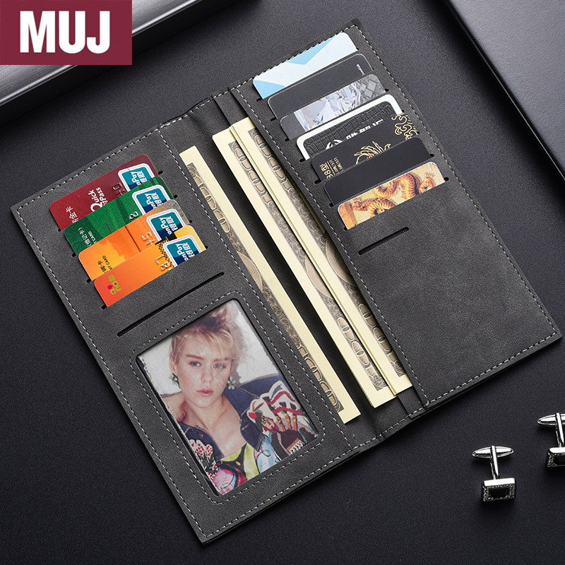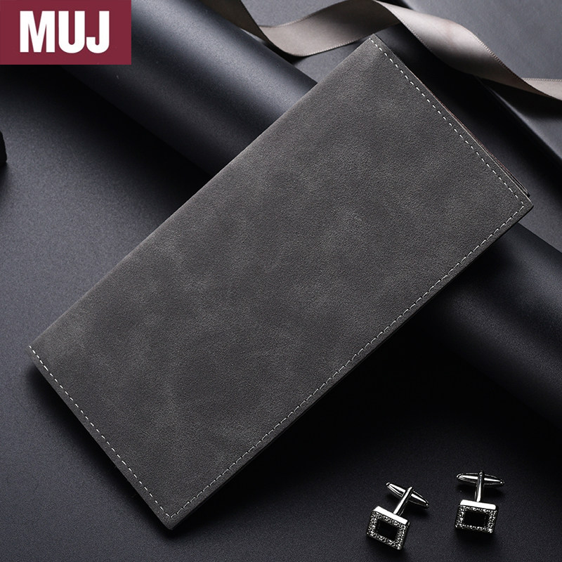 日本无印MUJ男士钱包手拿包皮包夹卡包手包翻毛皮钱夹证件防消磁