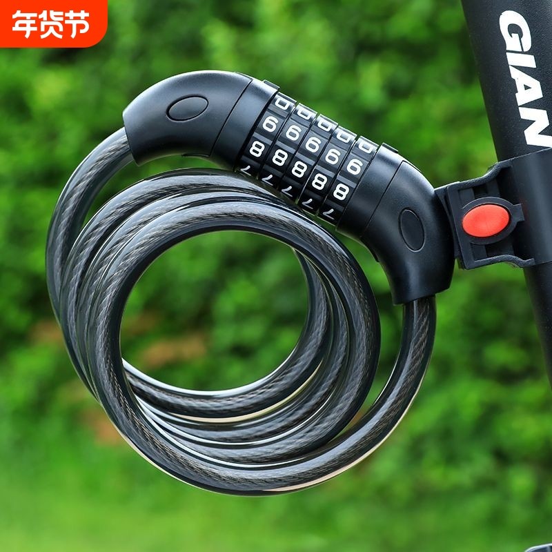 正品捷安特SECURITY密码圈锁山地自行车防盗四位密码锁钢缆锁1.2M