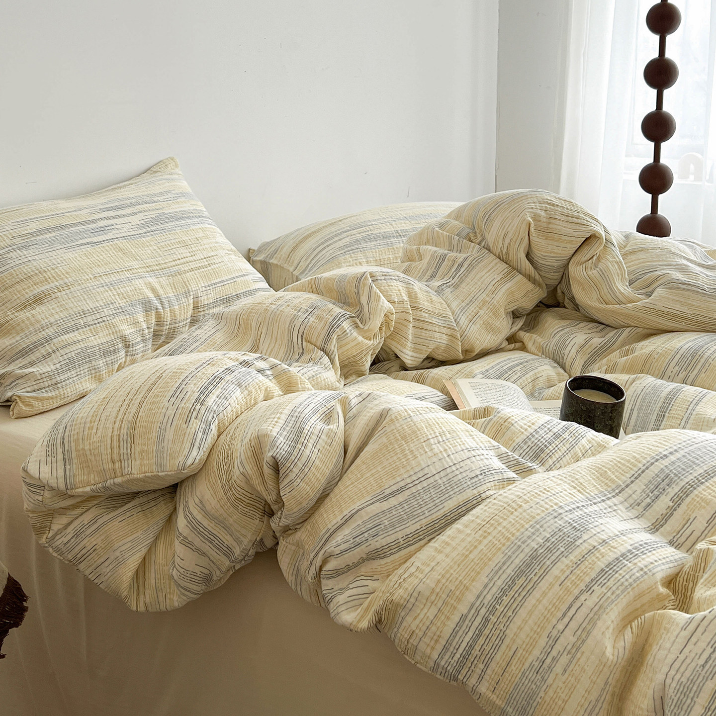 简约条纹床上四件套纯棉全棉2025新款床单被套床笠学生宿舍三件套