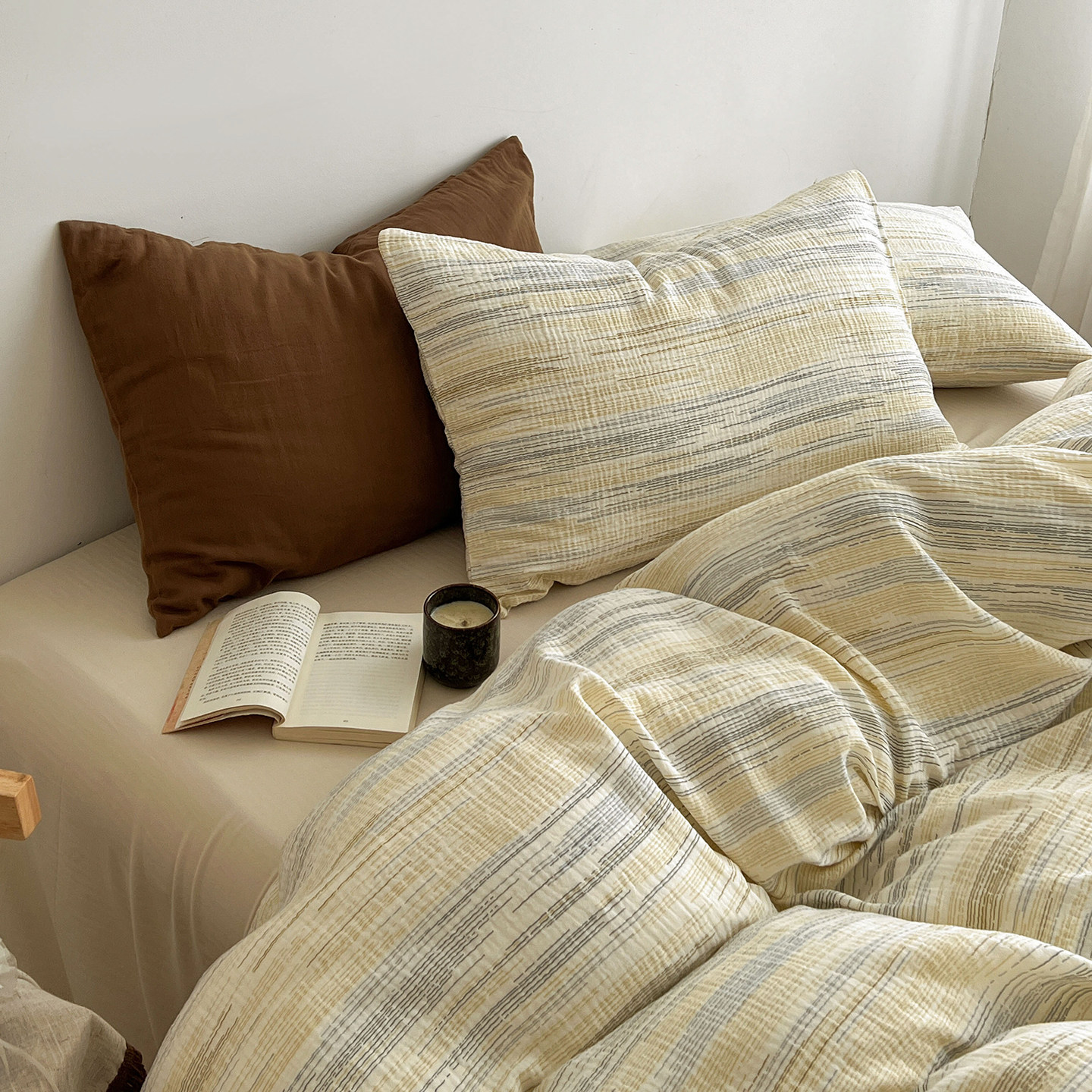 无印良品高级感床上四件套全棉纯棉双人被套床单笠轻奢床品三件套