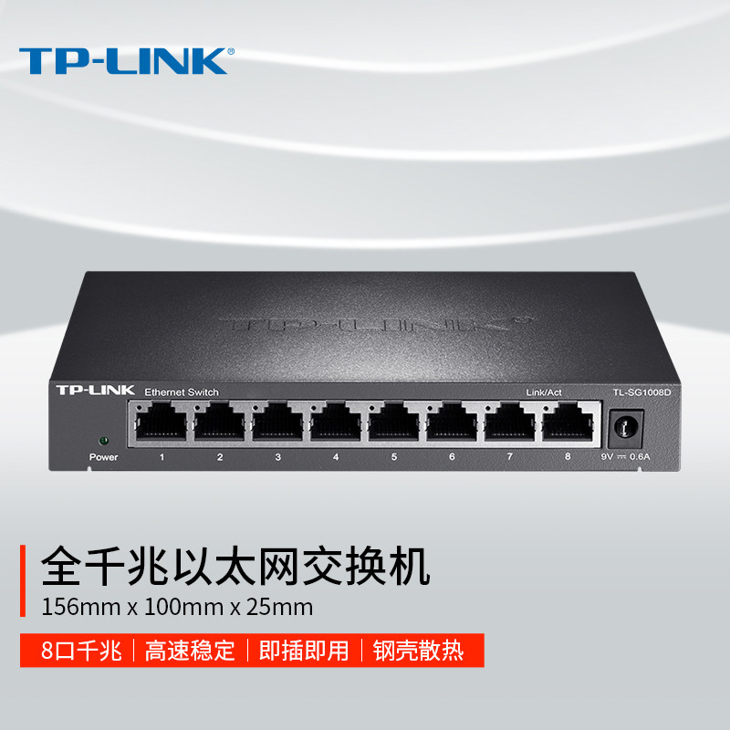 普联TP-LINK交换机5口8口全千兆交换机铁壳高速企业级监控网络交换器1000M网线分线器分流器集线器TL-SG1008D