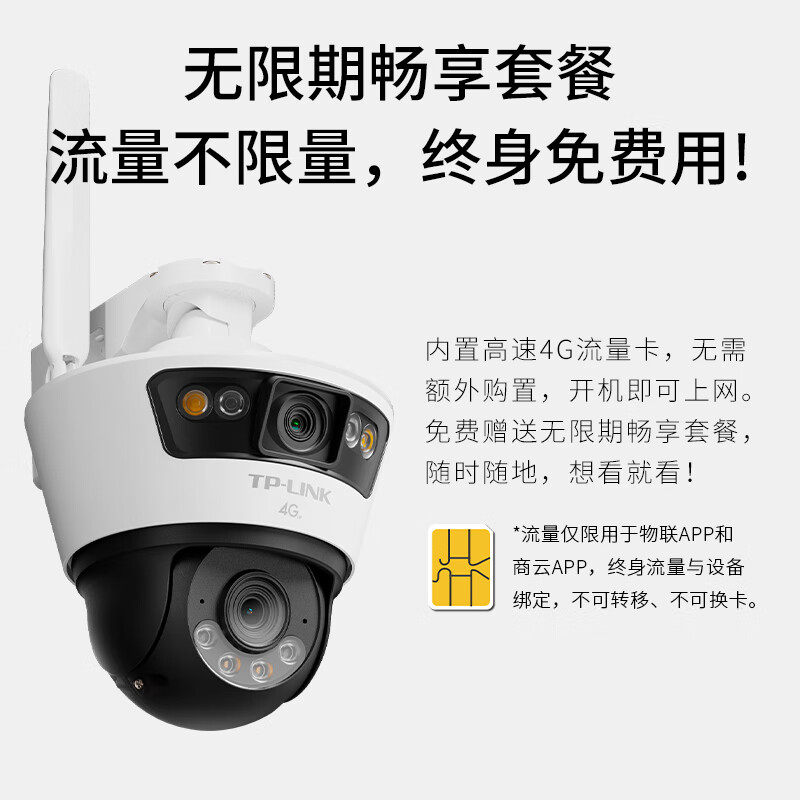普联TP-LINK摄像头内置无限4G终身免费流量双摄联动600万高清全彩家用监控器手机远程360度室外防水摄影头
