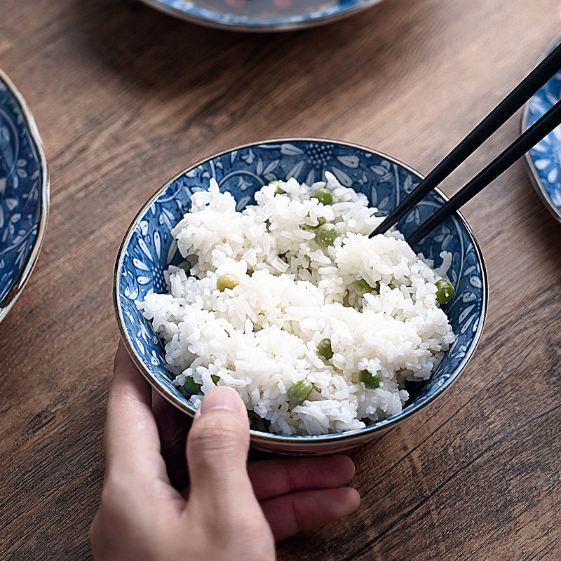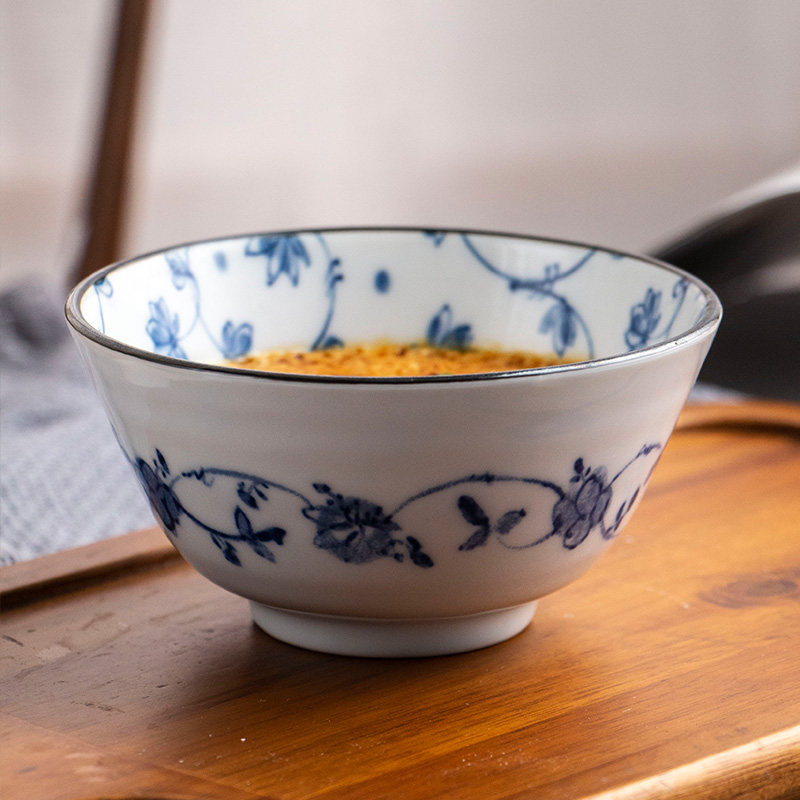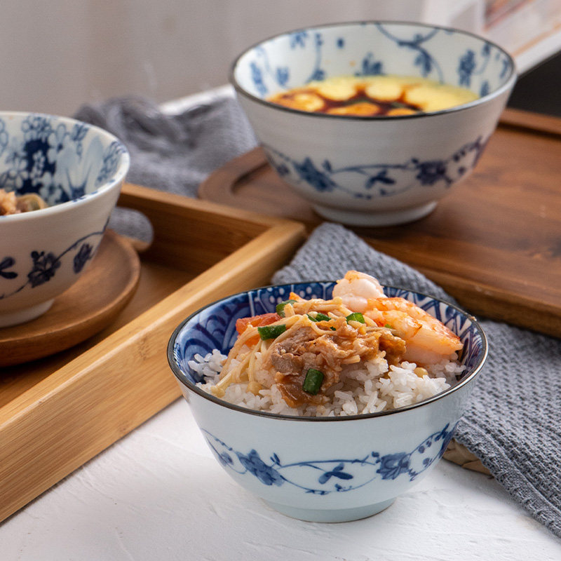 美浓烧家用日式青花陶瓷家用4.5英寸高脚微波炉米饭碗釉下彩餐具