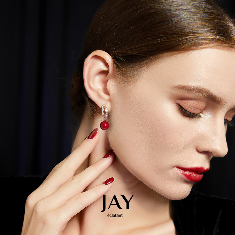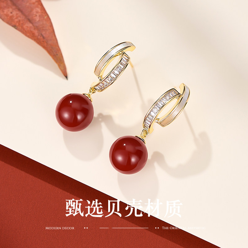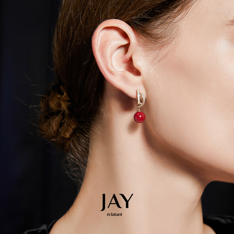 JAY复古红色耳环秋冬方圆脸耳饰女高级感耳坠过年耳钉新年礼物