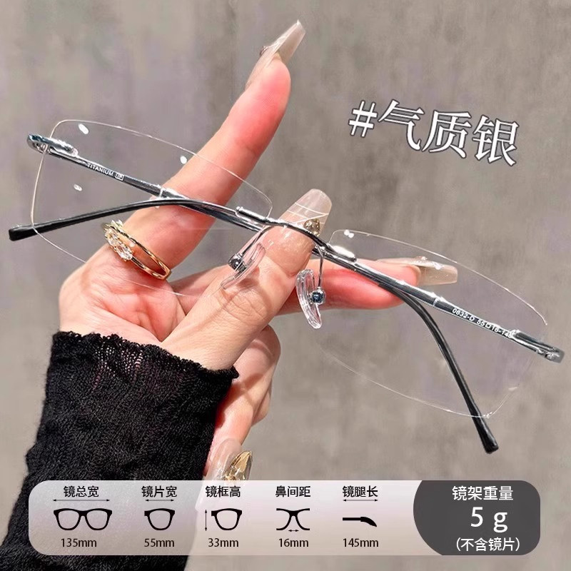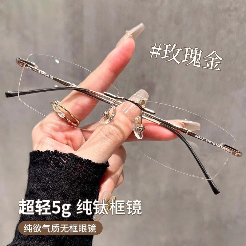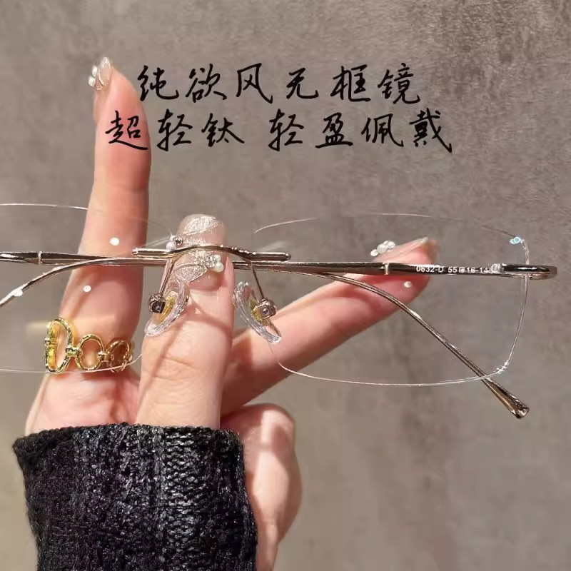 超轻6克纯钛无框眼镜无边框近视女可配有度数纯欲高级感钛架镜框