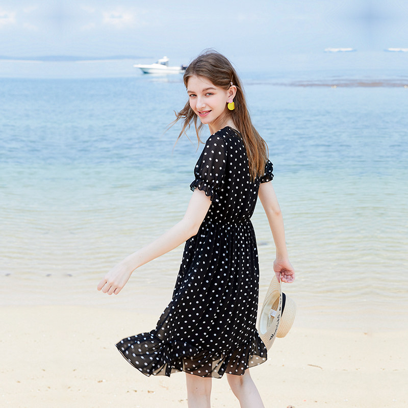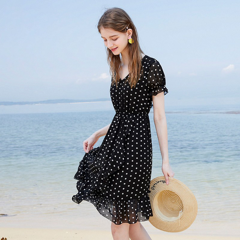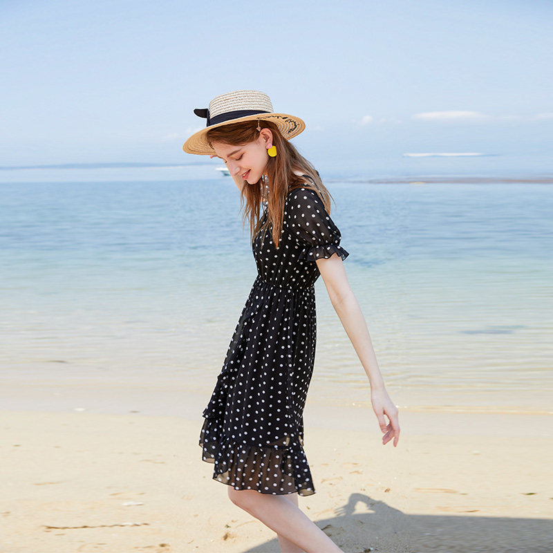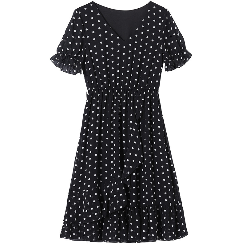 波点雪纺连衣裙女法式复古时尚洋气质荷叶边裙子潮2025夏季新款