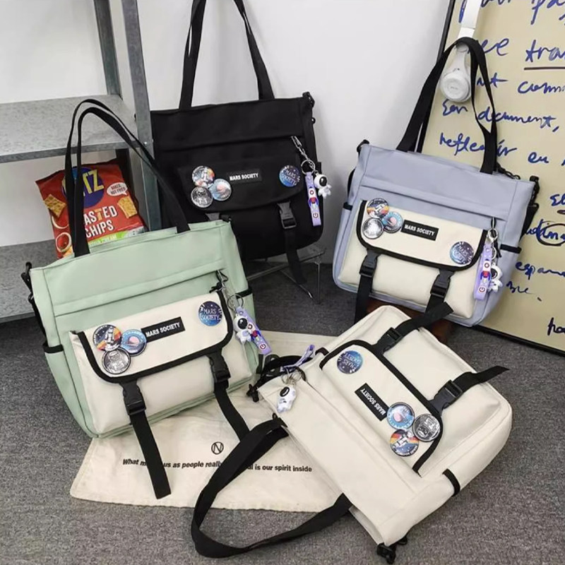 大容量学生手提袋拎书袋男女帆布补课包初中生提包补习袋斜挎包