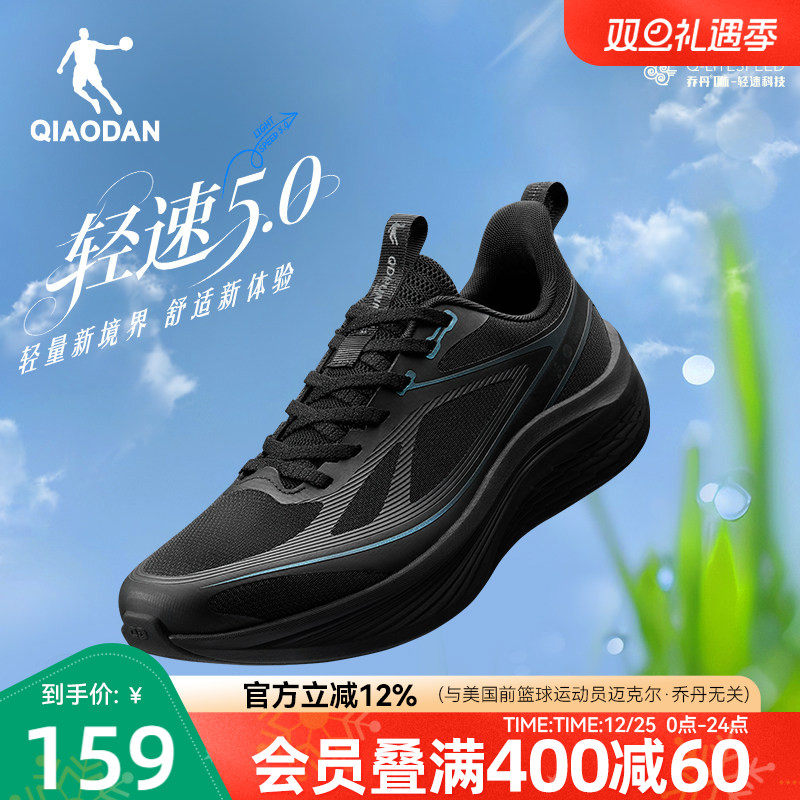 乔丹轻速5v2减震软底跑步鞋男秋冬厚网舒适轻便舒适黑色运动鞋男
