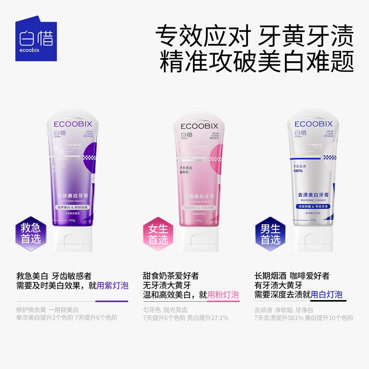 白惜美白牙膏清新口气亮白抗糖防蛀口臭男女官方正品去渍牙齿光感
