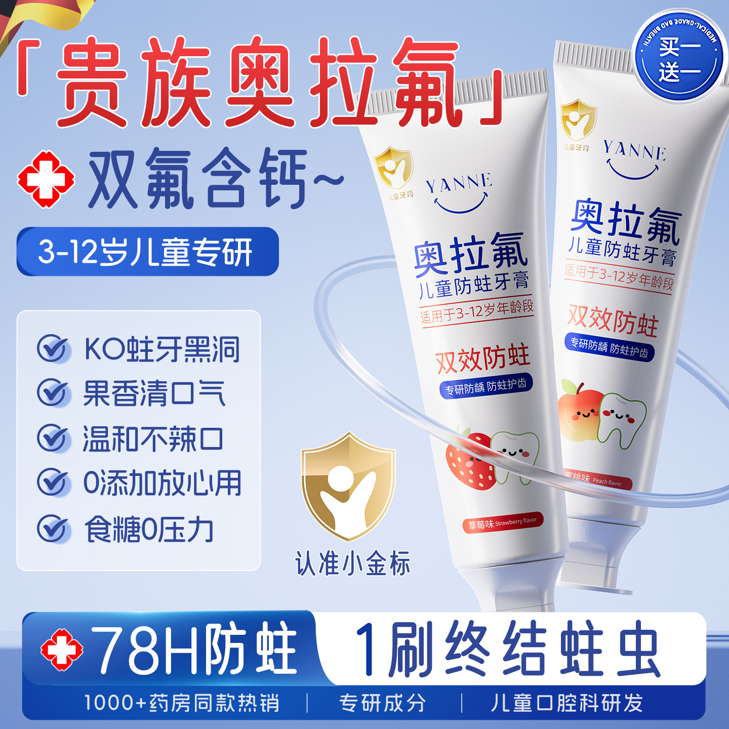 松达儿童防蛀牙膏3-6-12岁以上宝宝牙膏防蛀牙适用换牙期