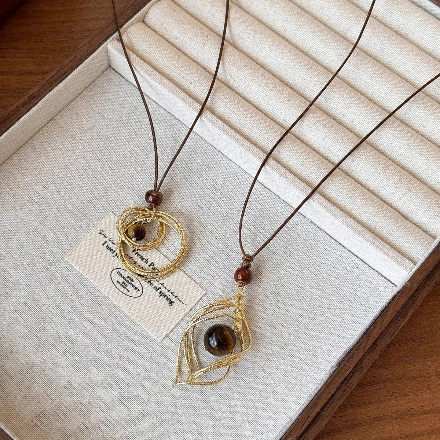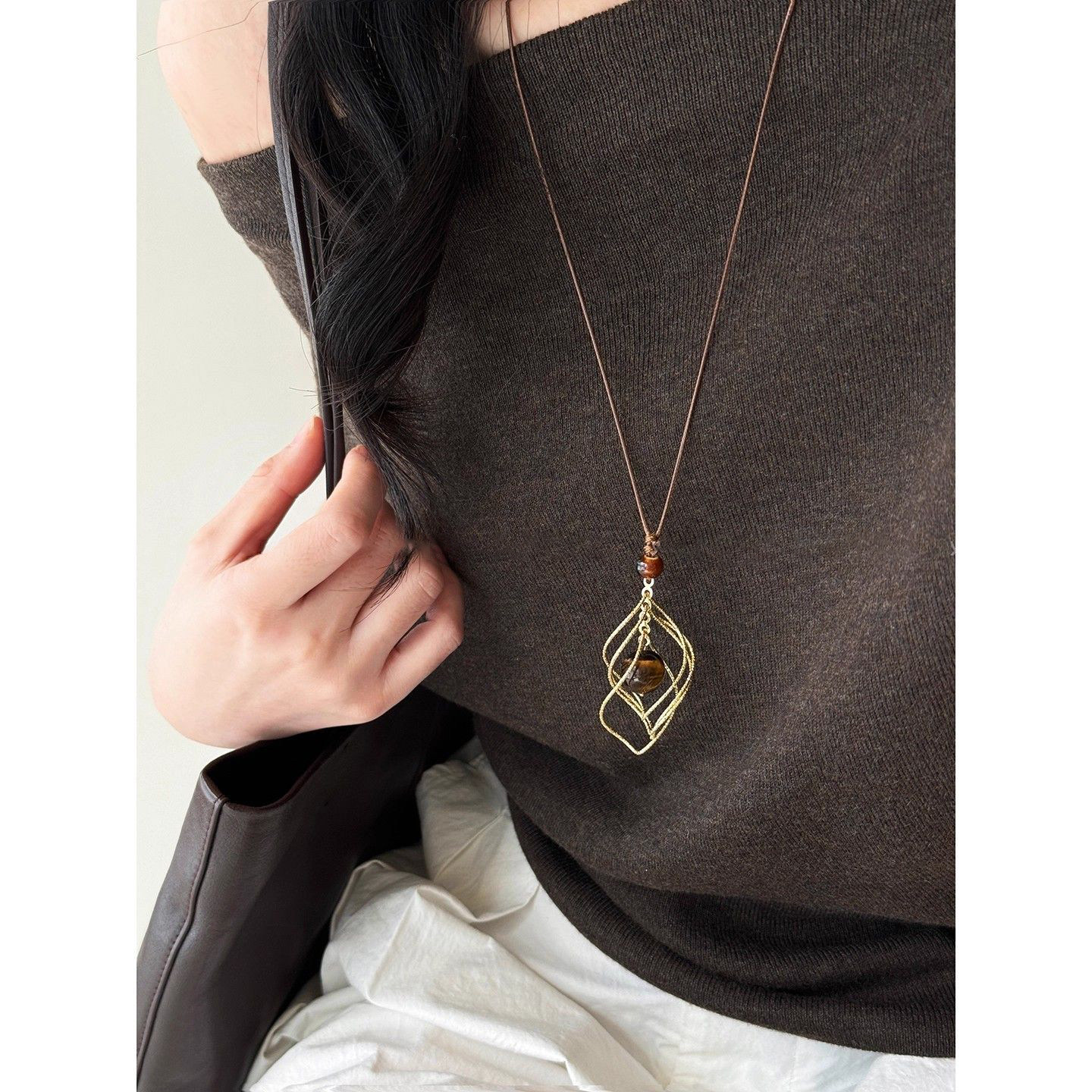 美拉德金色虎眼石长款吊坠项链女款秋冬轻奢高级感毛衣链装饰配饰