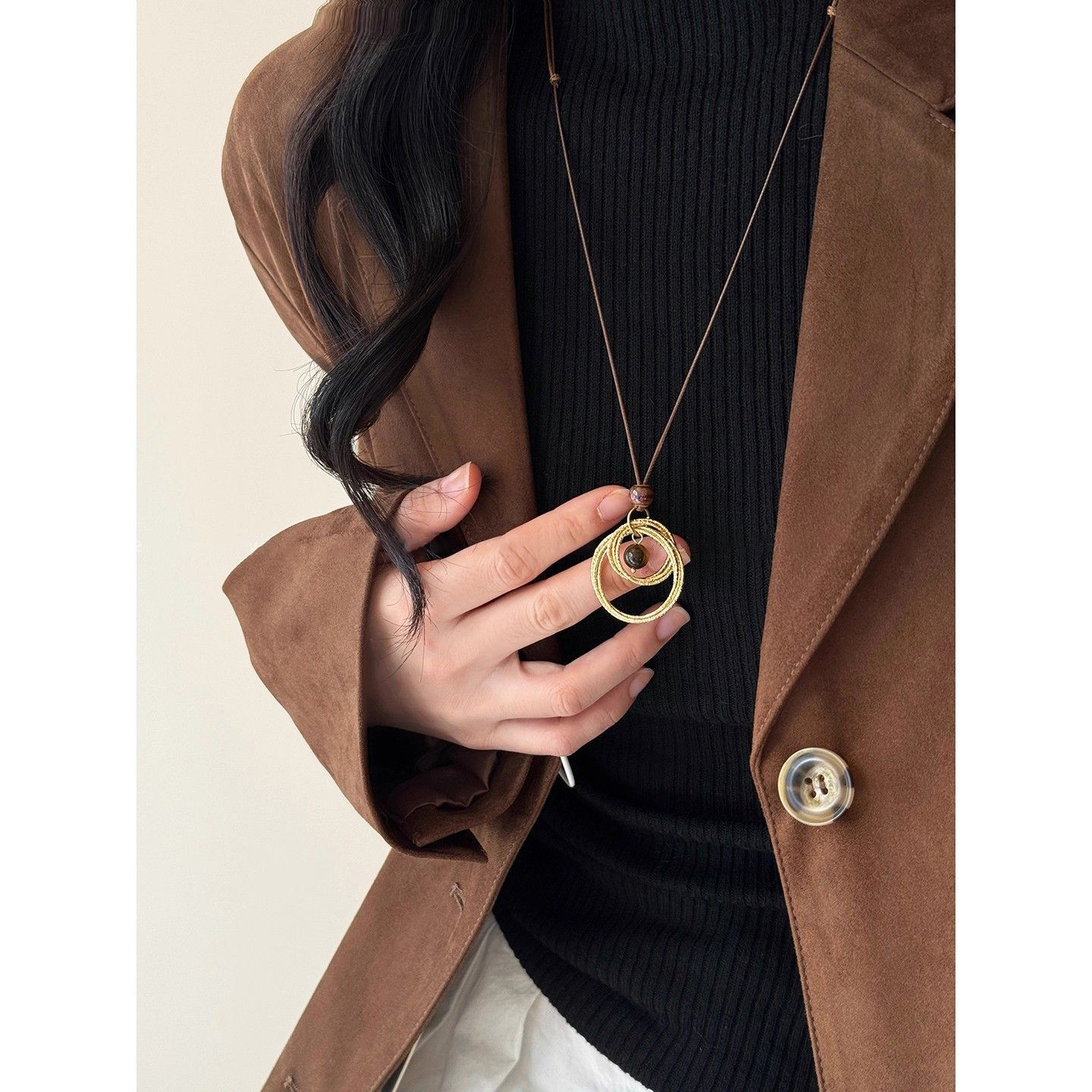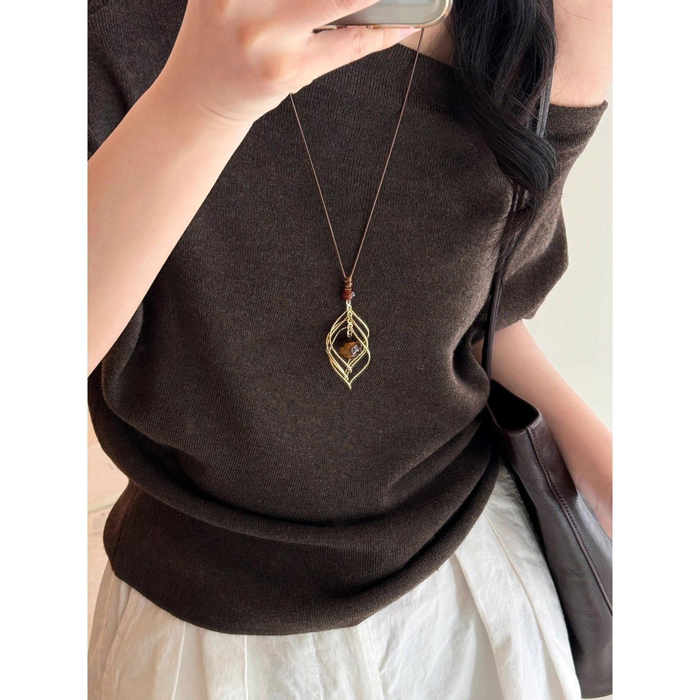 美拉德波西米亚叠戴毛衣项链女棕色复古穿搭choker锁骨链高级配饰