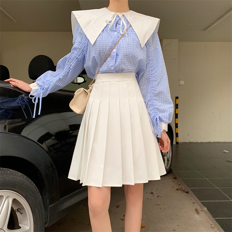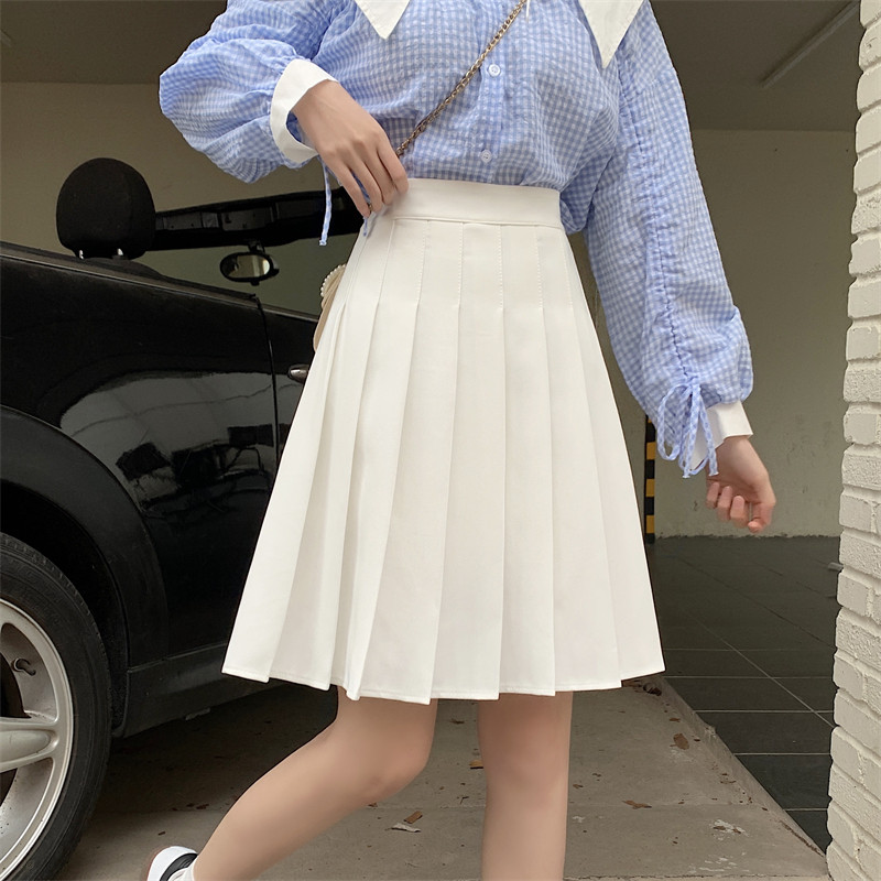 百褶裙女小个子夏季新款高腰显瘦半身裙纯色大码学院风jk短裙套装