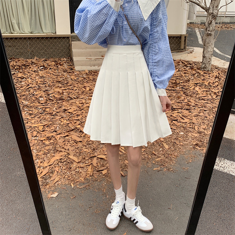 大码白色百褶裙女春夏胖mm高腰显瘦a字中裙加长学院风蓬蓬半身裙