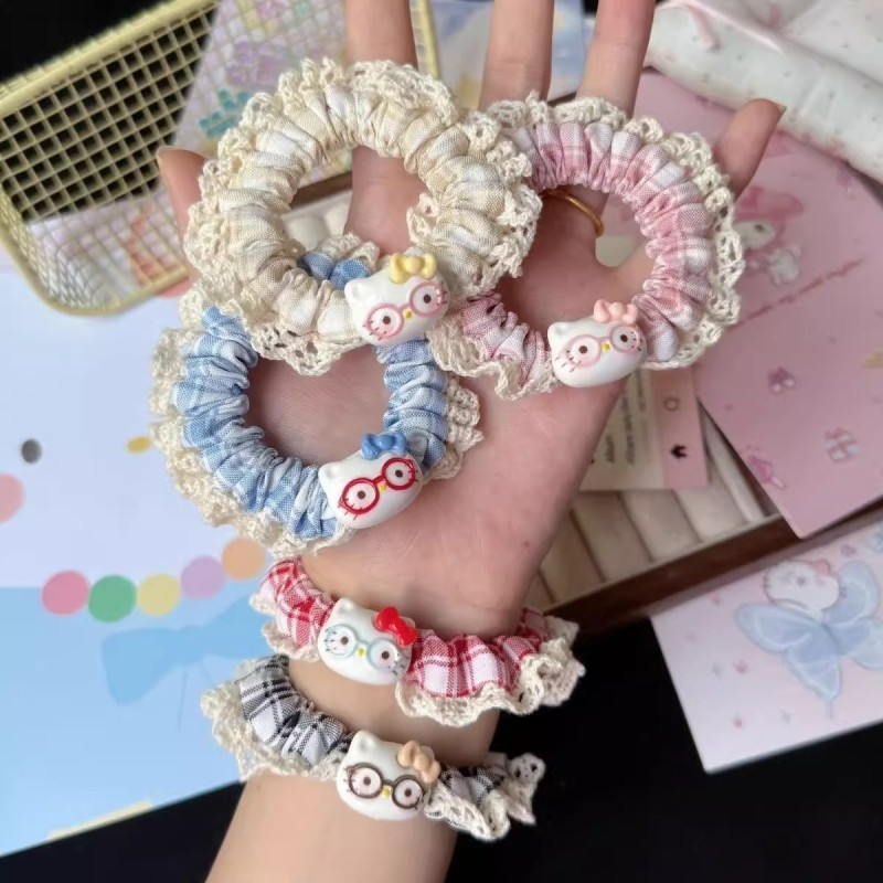 甜美花边眼镜猫咪发圈卡通发绳马尾ins小肠少女可爱蕾丝皮筋头饰