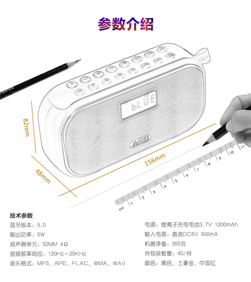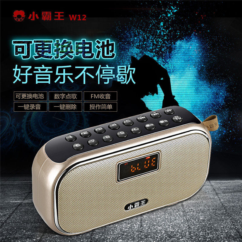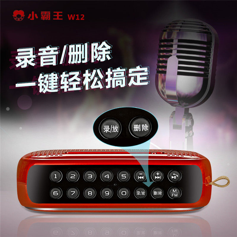 小霸王W12蓝牙音箱插卡收音机录音锂电池大音量低音炮老人评书机