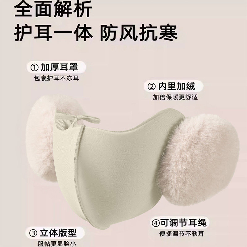 保暖耳罩口罩冬骑行防风防寒护耳二合一面罩耳套女骑车一体高颜值