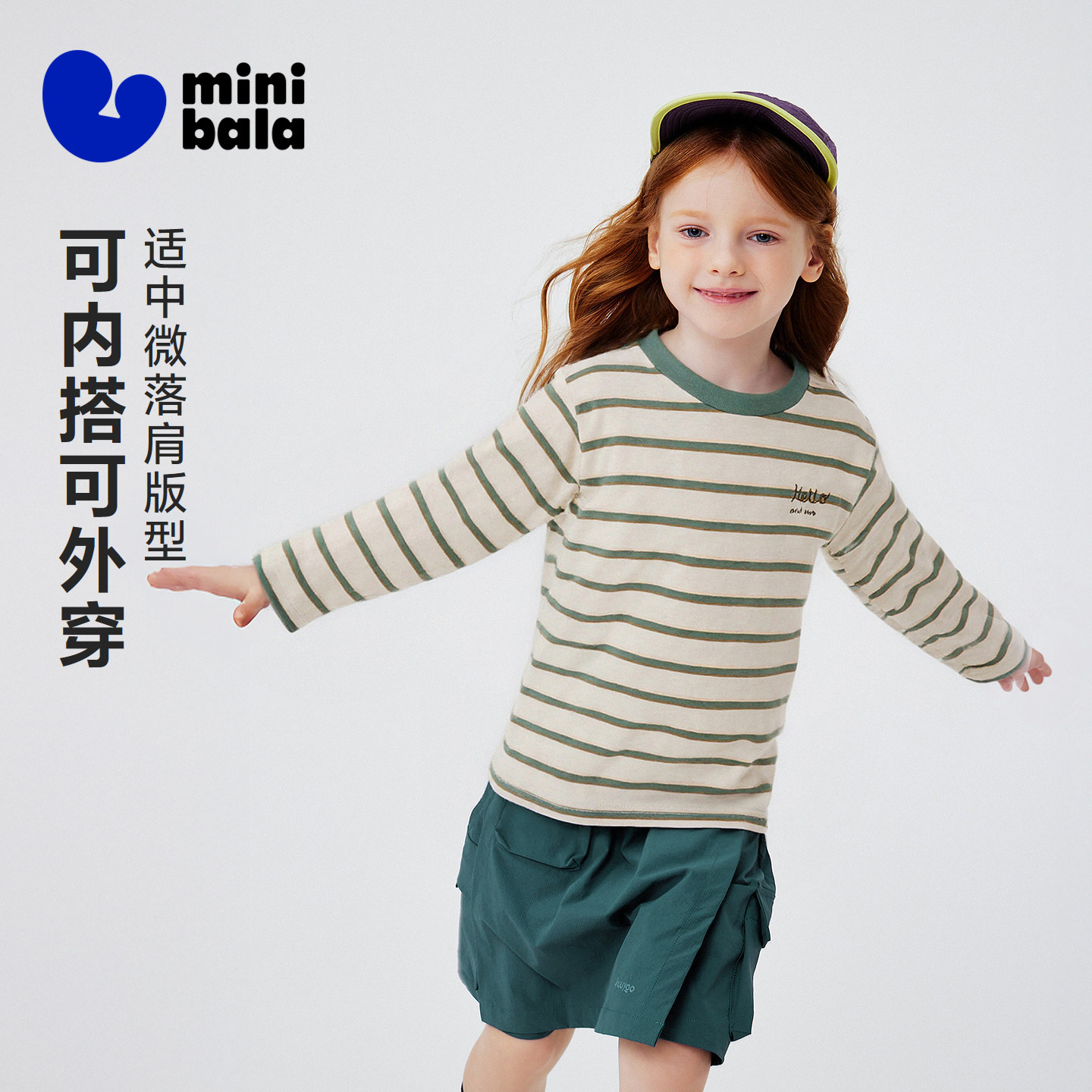 迷你巴拉儿童亲肤纯棉长袖T恤简约条纹撞色男女童打底衫春季新品
