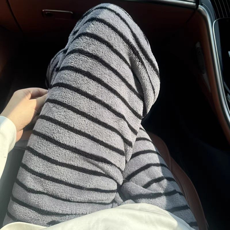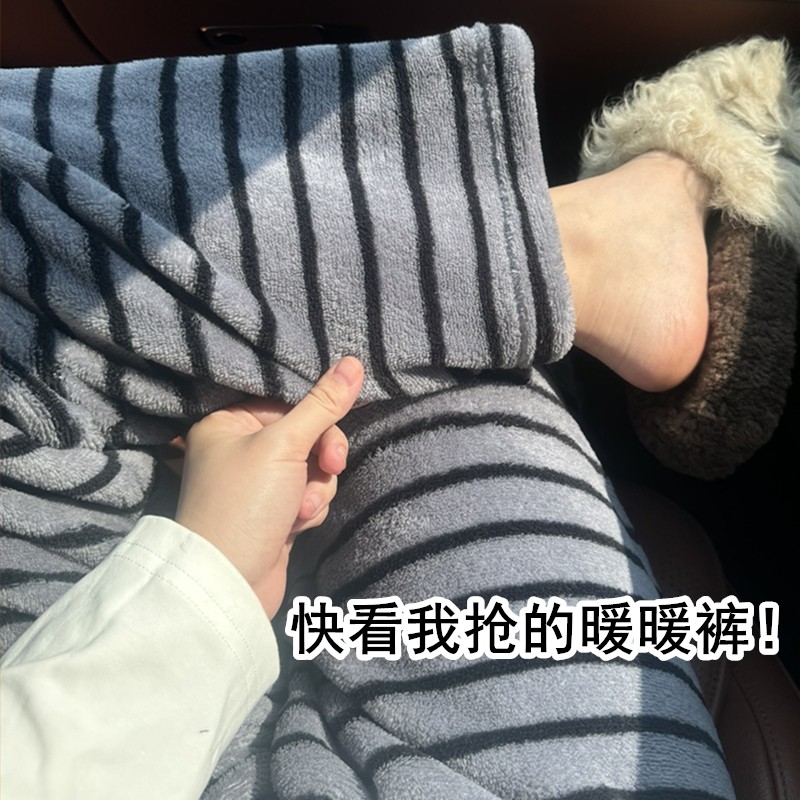 条纹睡裤女长裤秋冬女装加绒厚法兰绒裤子暖暖裤珊瑚绒直筒家居裤