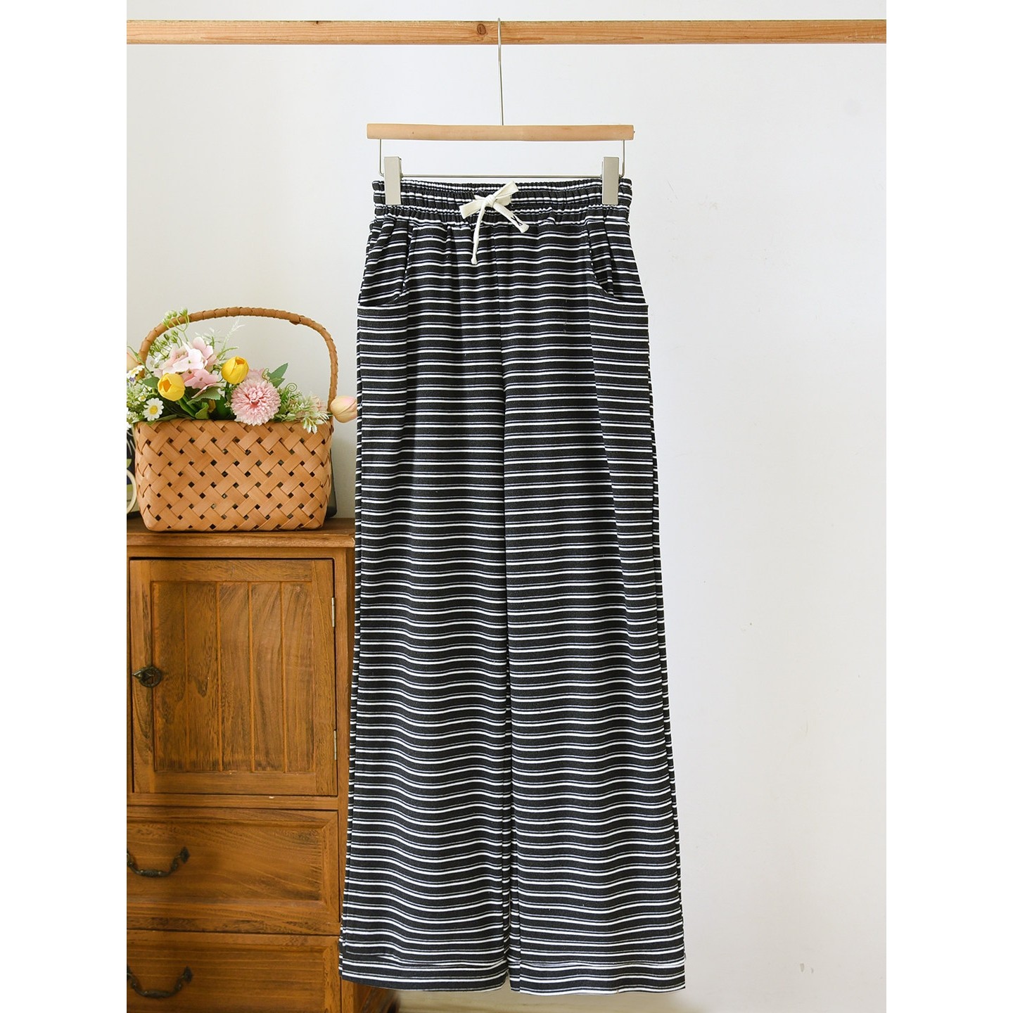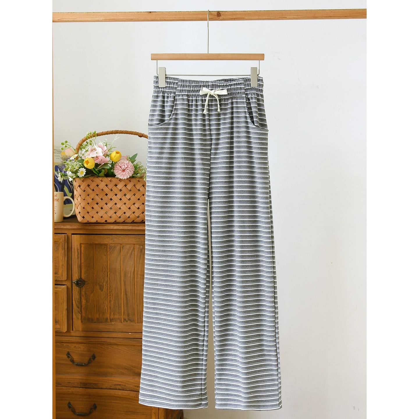 百分百纯棉女休闲家居睡裤宽松大码高腰春夏秋薄款长裤直筒空调裤