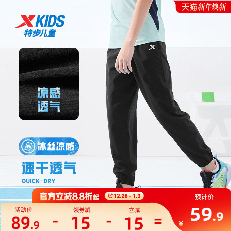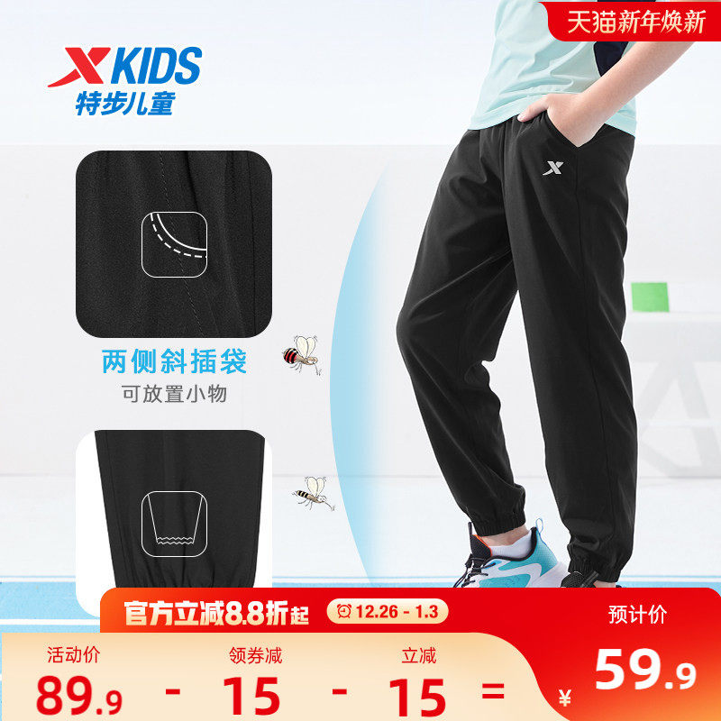 特步童装男童裤子薄款2025夏季新款儿童大童夏装速干运动裤防蚊裤