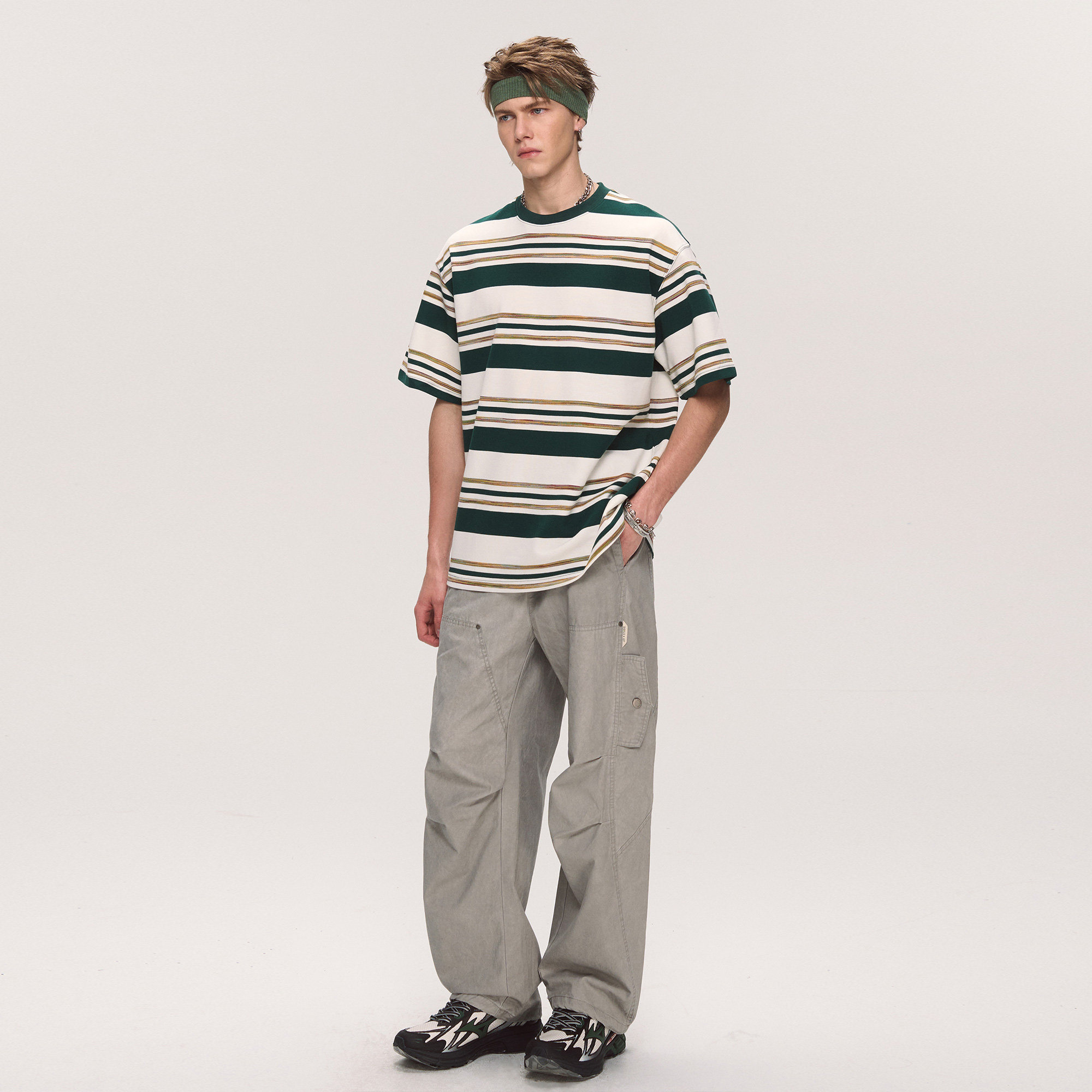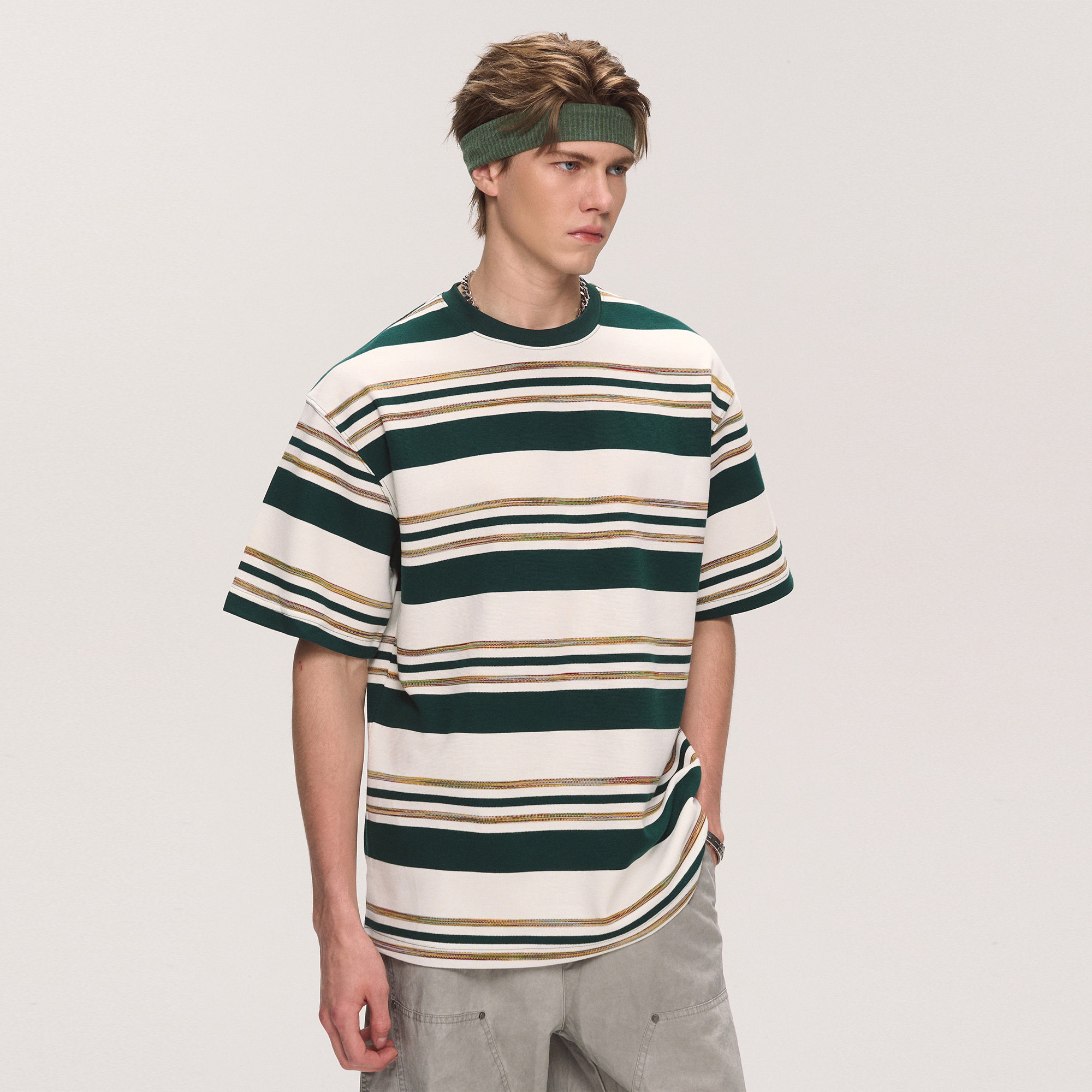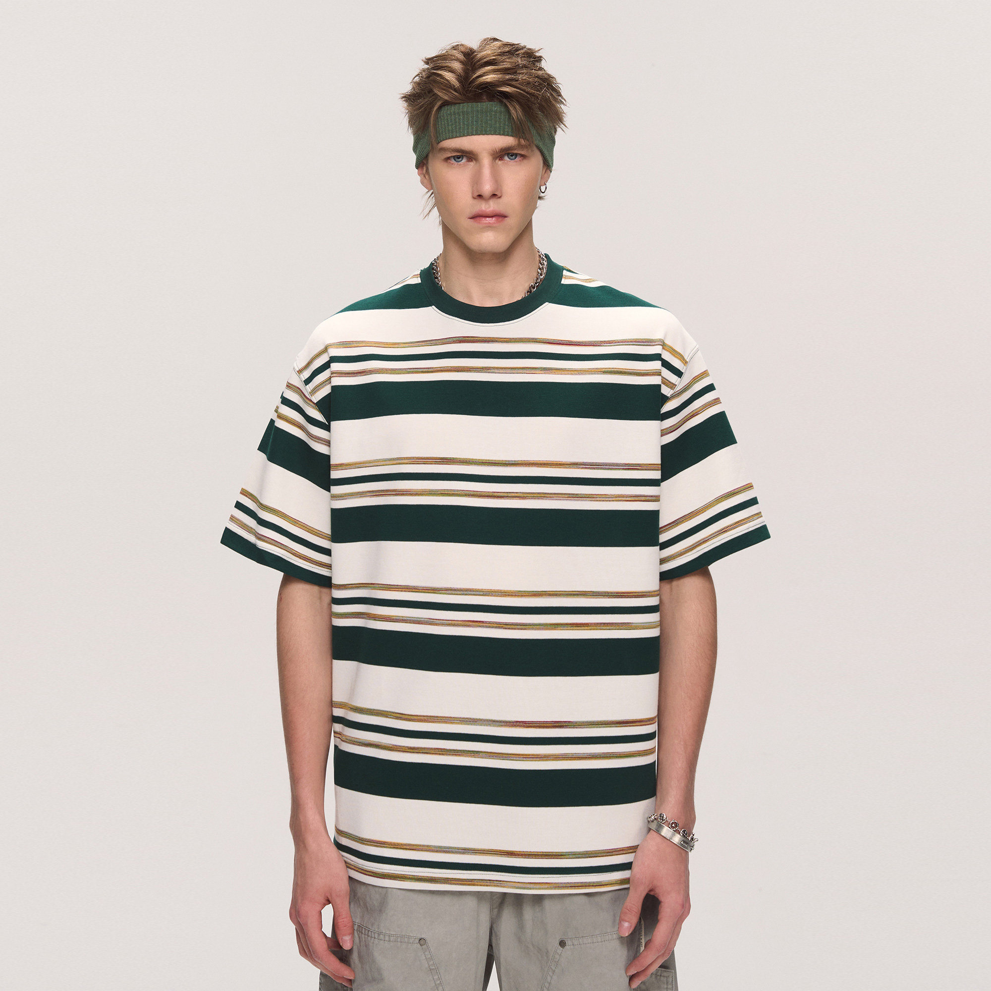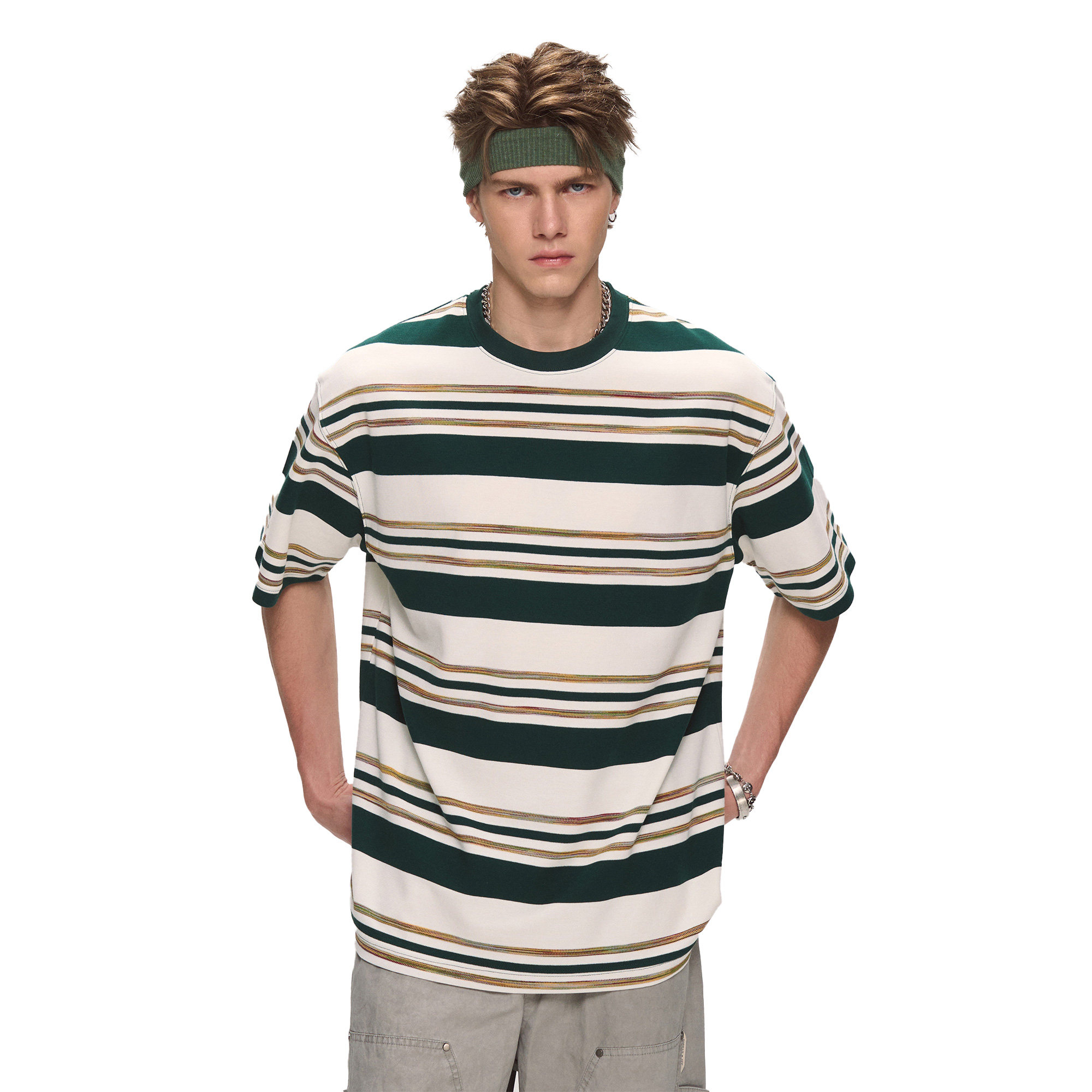 ALLIN 撞色条纹短袖t恤男生潮牌夏季衣服2025新款上衣半袖体恤衫
