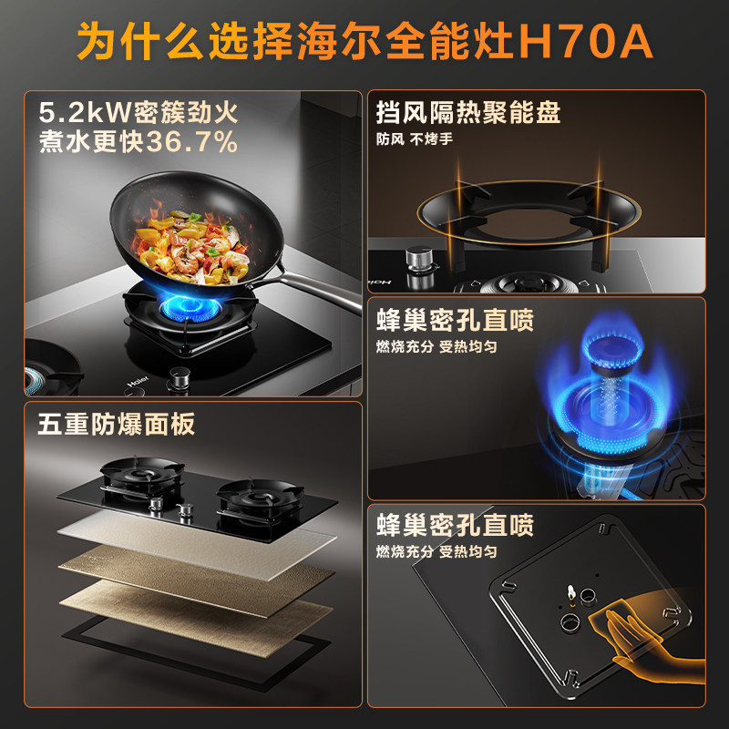 海尔燃气灶家用嵌入式天然气双灶H70A煤气灶液化气官方旗舰Q2BE6