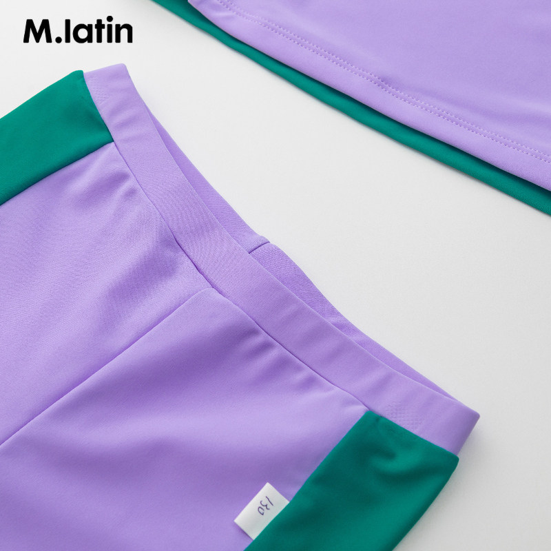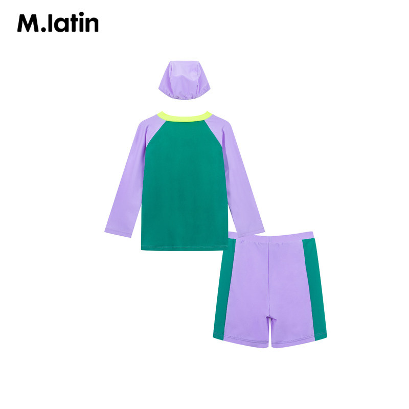 马拉丁童装儿童年夏新款分体长袖分体拼色大童女童泳衣