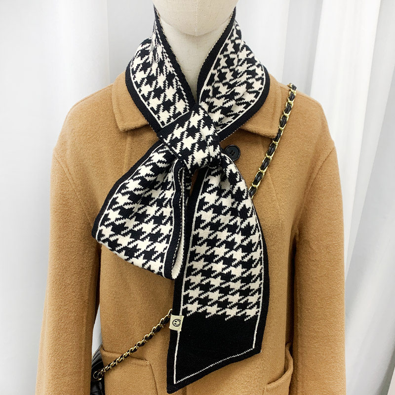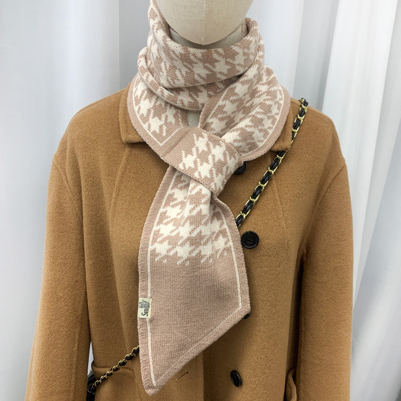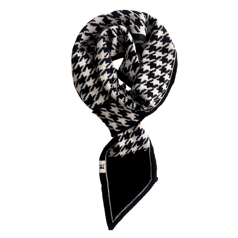 千鸟格围巾女款冬季新款氛围感懒人小围脖高级感复古百搭尖角领巾