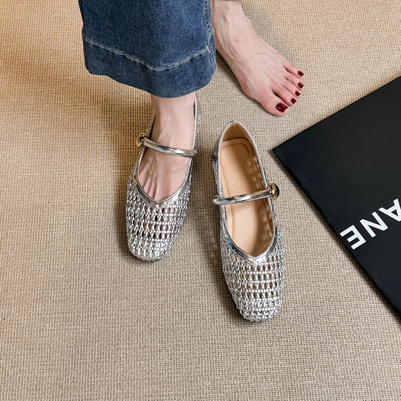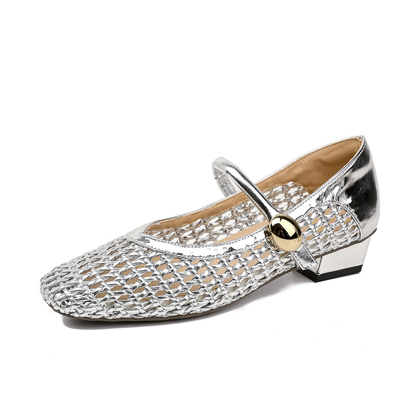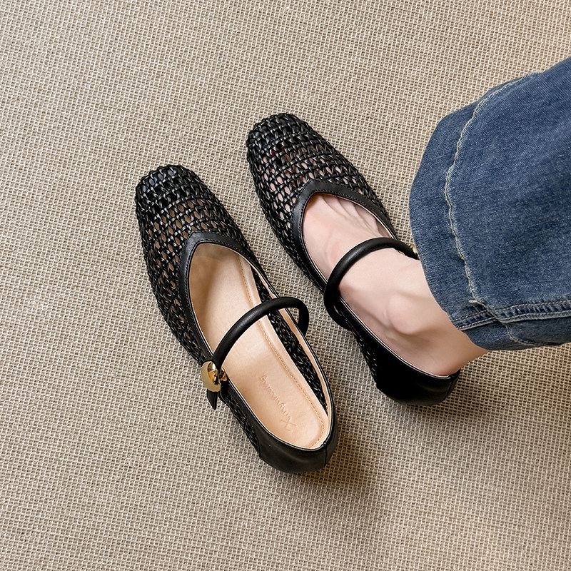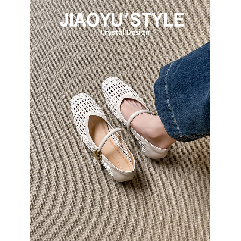 真皮~骄屿内增高编织镂空玛丽珍鞋2025新款夏一字带浅口高跟凉鞋