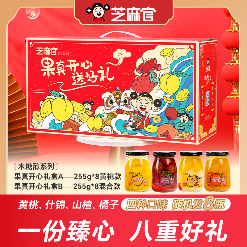 芝麻官木糖醇黄桃罐头礼盒新鲜混合木糖醇水果罐头新年礼盒装送礼