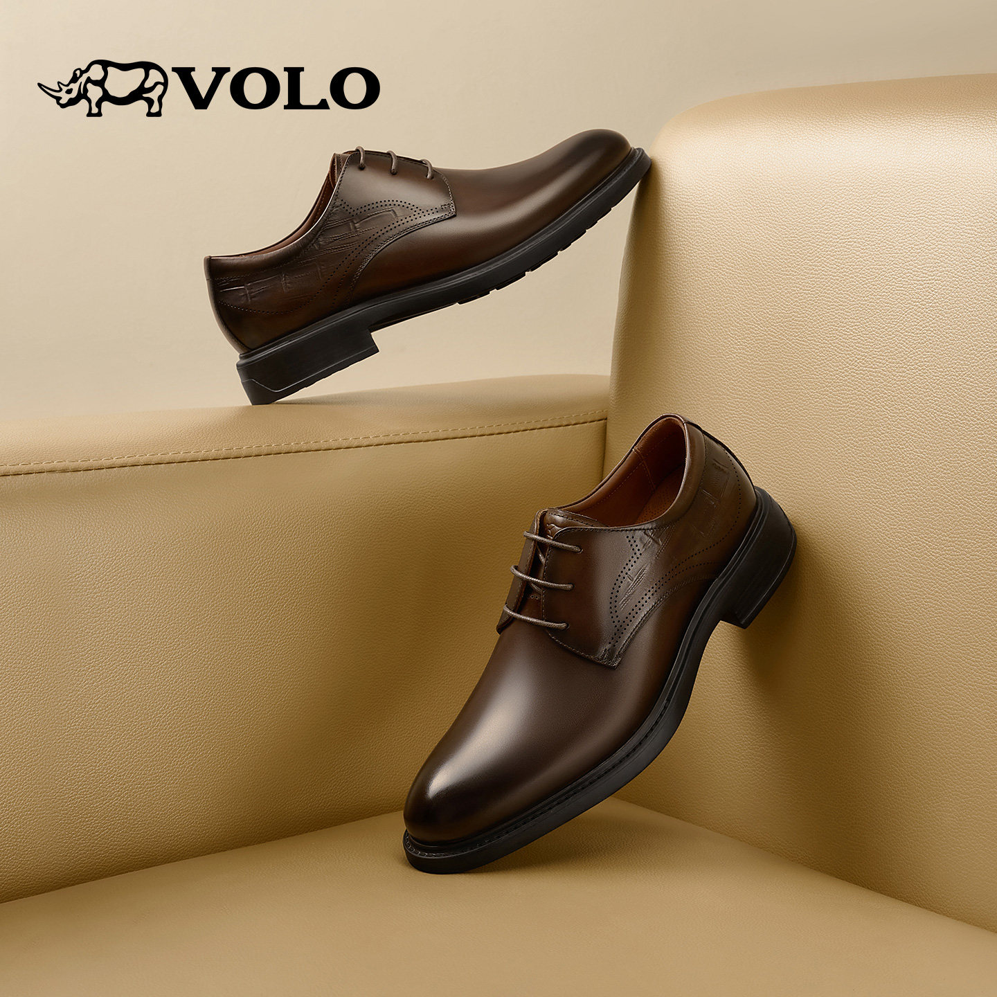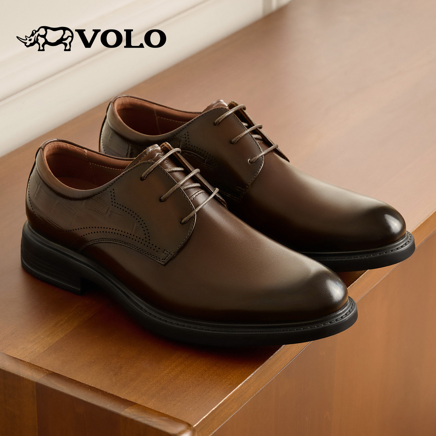 VOLO犀牛男士皮鞋男正装商务2025新款秋冬真皮男鞋新郎结婚德比鞋