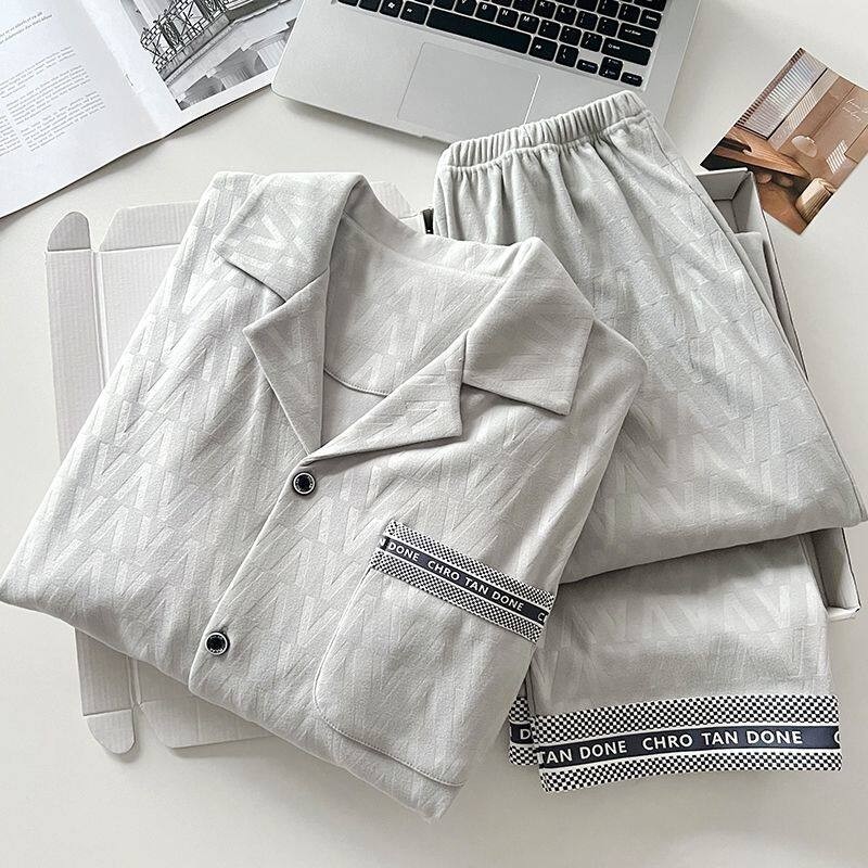 浪莎2025年新款睡衣男士夏季纯棉短袖长裤家居服男款夏天夏款套装