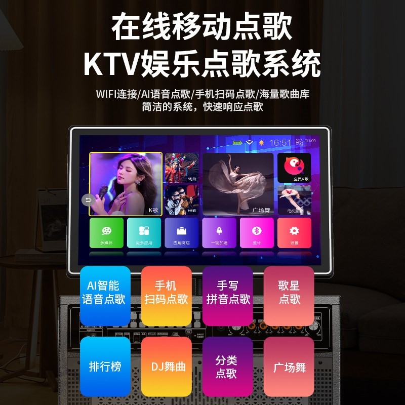 户外K歌音响广场舞音箱带显示屏音箱家庭KTV套装点歌一体机卡拉OK