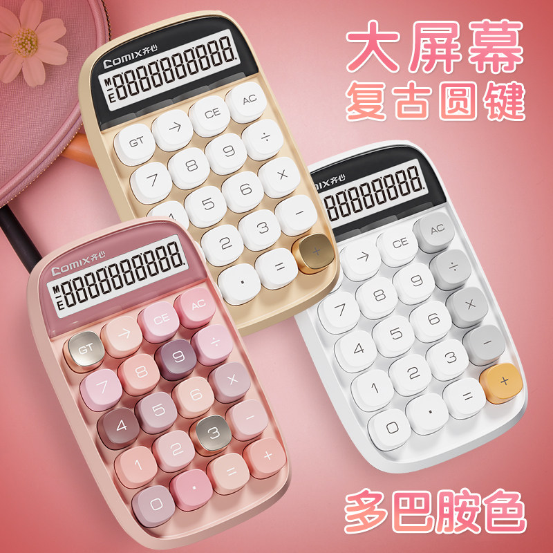齐心计算器用高颜值计算机女神款大屏可爱多巴胺桌面计算器大学生多功能机械电脑按键大号办公室用财务会计用