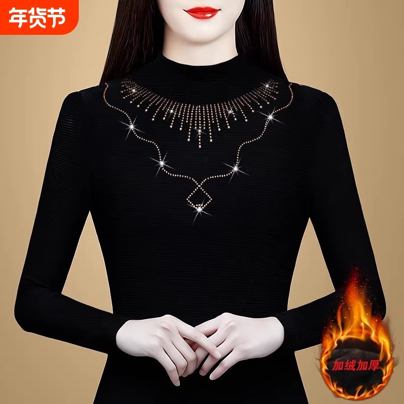 上衣女秋冬装半高领德绒洋气加厚中年妈妈打底衫内搭加绒红色黑色