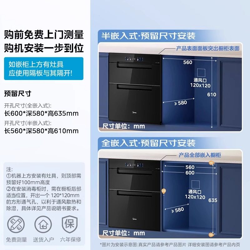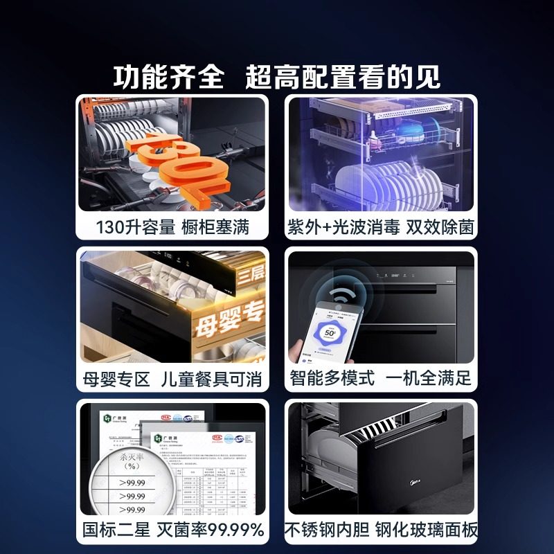 美的母婴消毒柜嵌入式厨房家用餐具奶瓶碗筷柜大容量烘干消杀130L