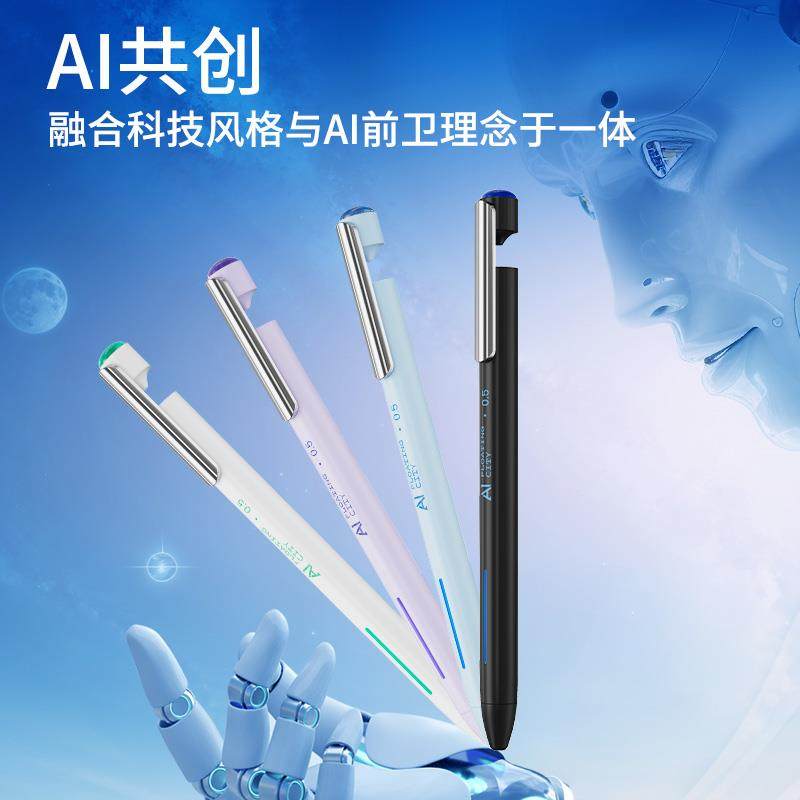 点石制笔AI悬境按动中性笔0.5mm黑芯笔双珠顺滑速干学生用炫酷刷