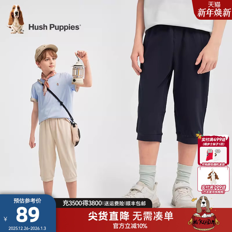 暇步士童装男童短裤夏新品大童户外游玩七分裤儿童运动透气裤子