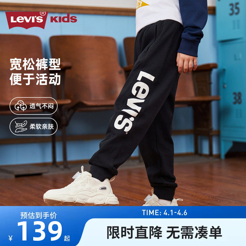 Levi's李维斯儿童裤子男童长裤春季新品中大童纯棉卫裤休闲运动裤