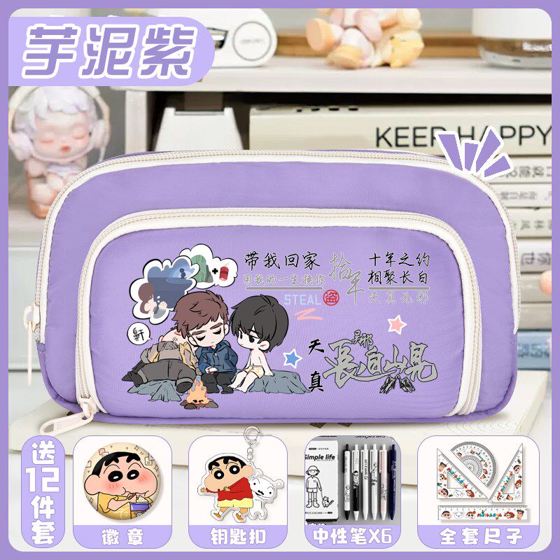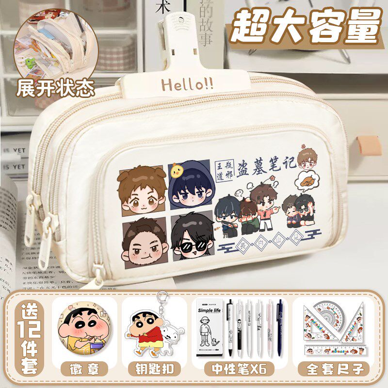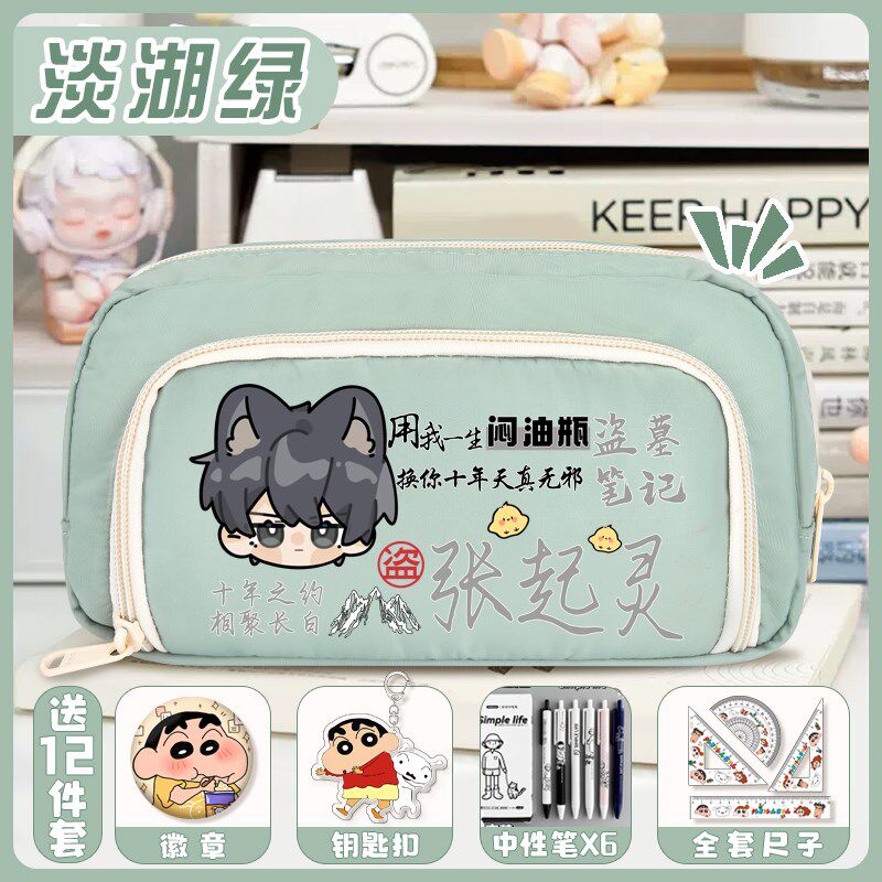盗墓笔记大容量三层铅笔袋张起灵吴邪中小学生多隔层文具盒男女孩