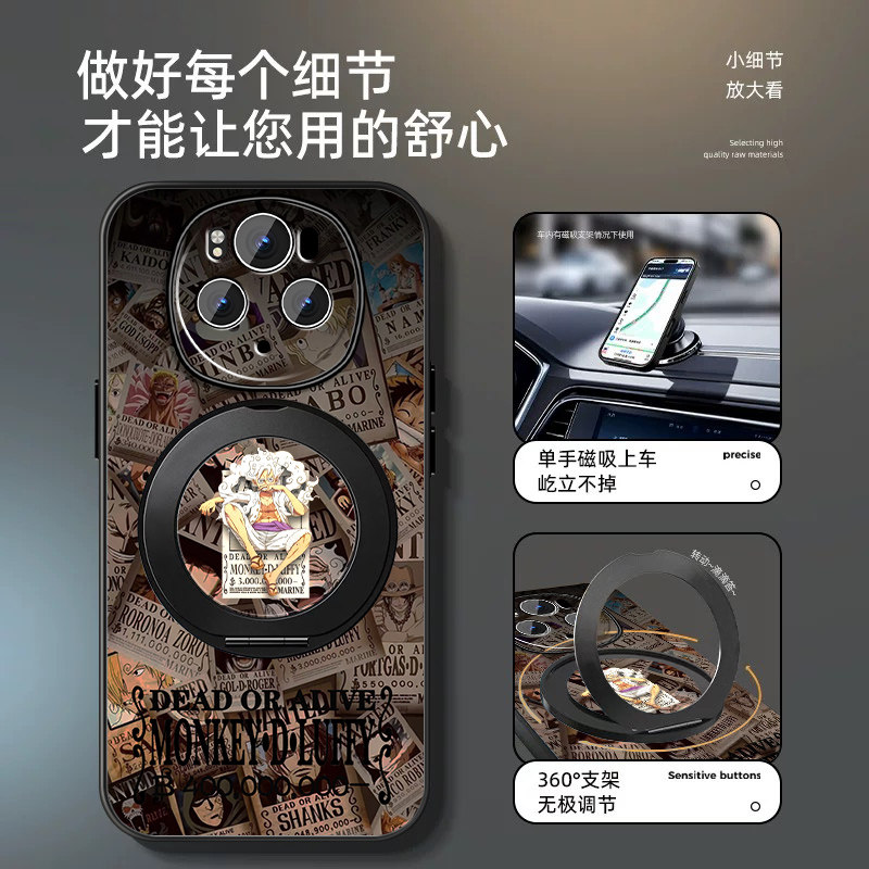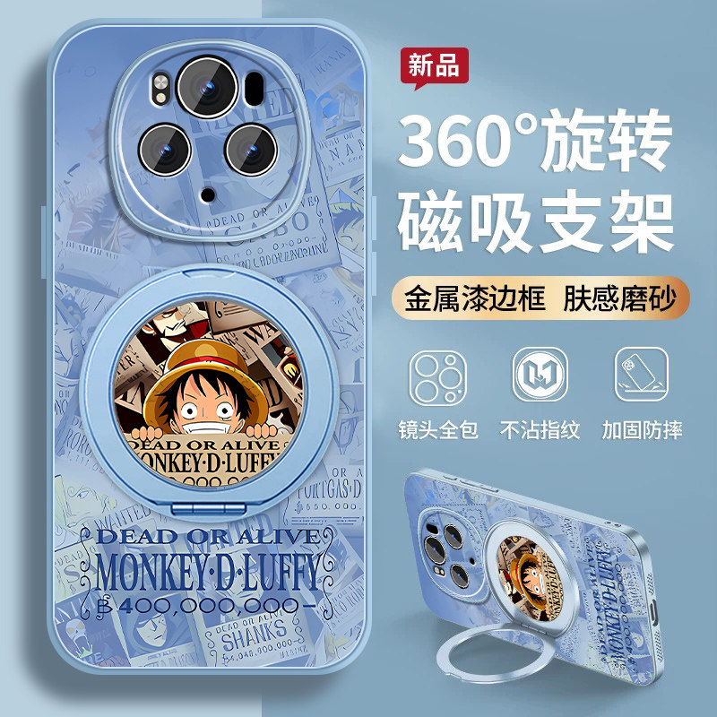 适用华为荣耀magic6手机壳荣耀magic6pro新款hono魔术6海贼王路飞旋转支架套全包防摔硅胶男动漫磁吸支点外壳