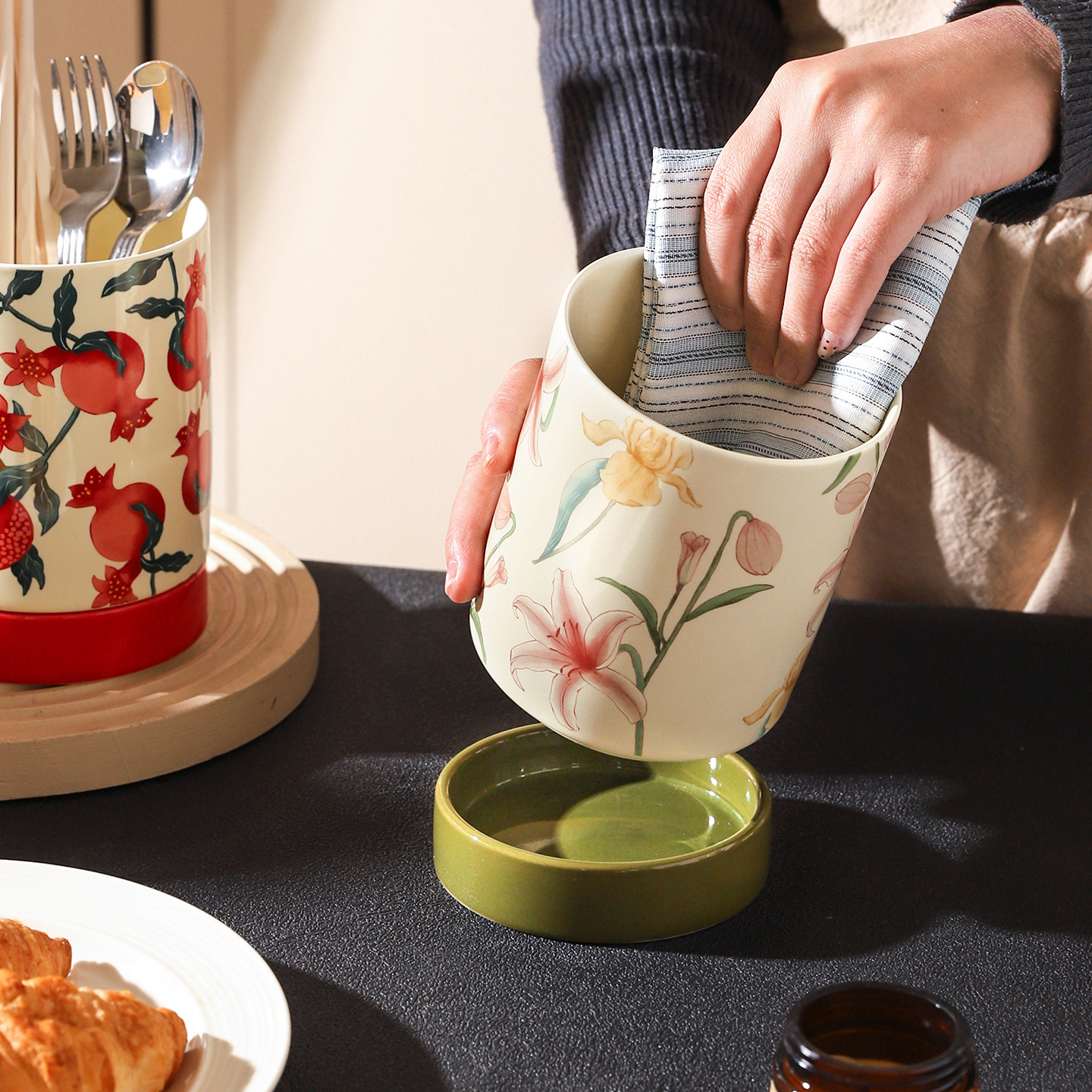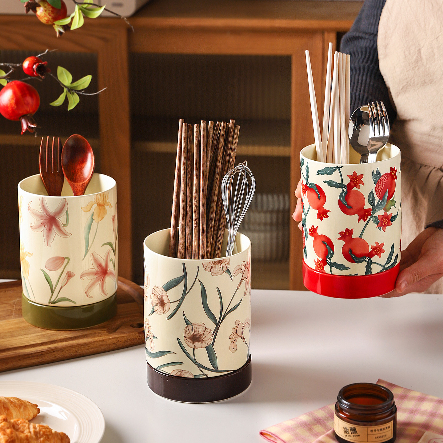舍里中式陶瓷筷子收纳盒家用复古筷子筒厨房沥水防霉筷子桶筷子笼