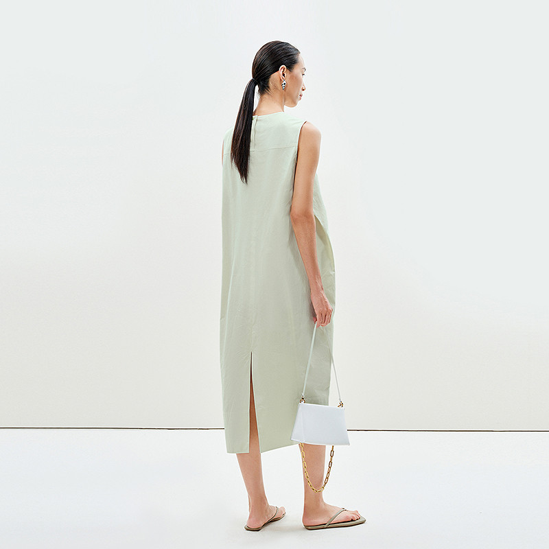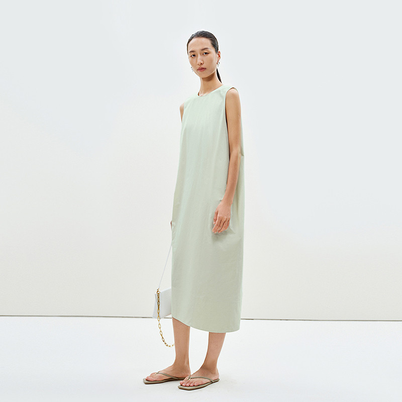 LESS夏日清新感背心长裙简约休闲圆领长绒棉无袖连衣裙2P4G11730