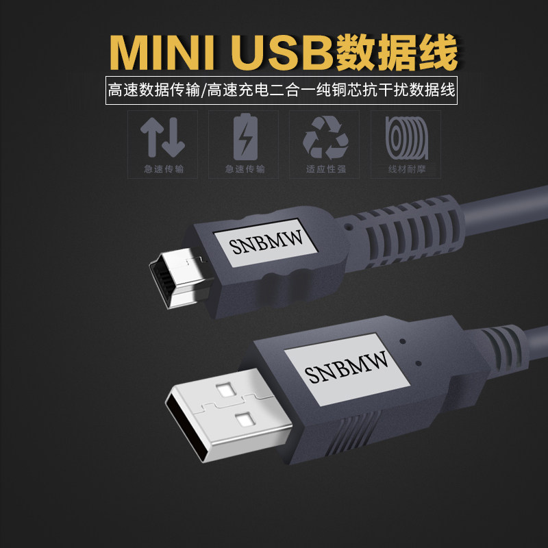 mini usb数据线mp3转接头车载充电器线老式收音机MP4连接通用行车记录仪线老年机v3电源导航移动硬盘T型口