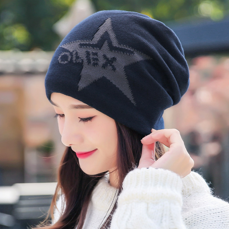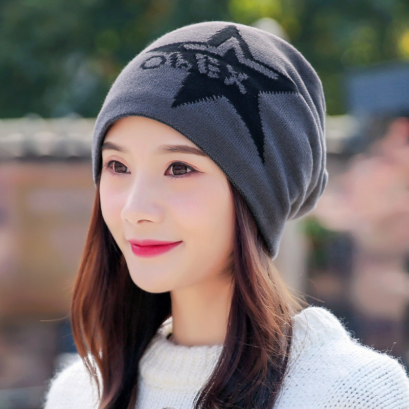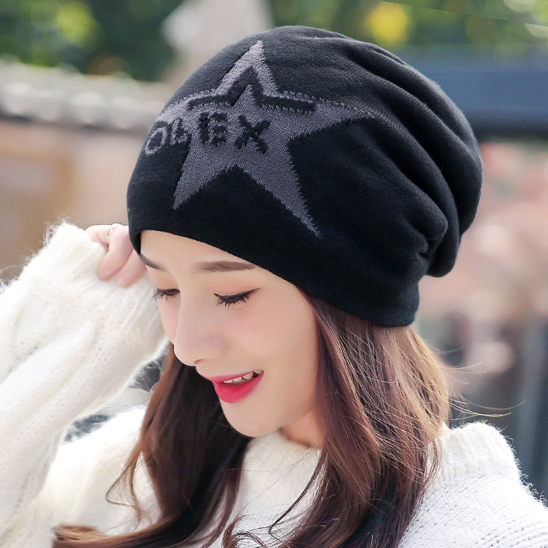 帽子女冬天韩版潮加绒毛线帽休闲女士保暖针织帽护耳套头帽包头帽