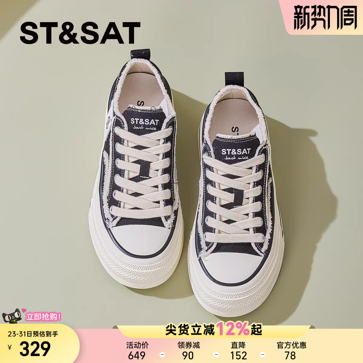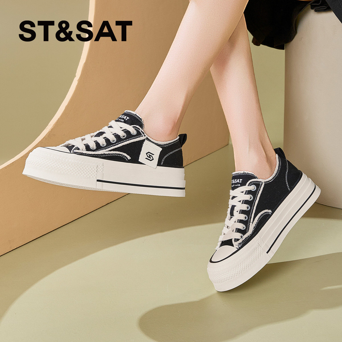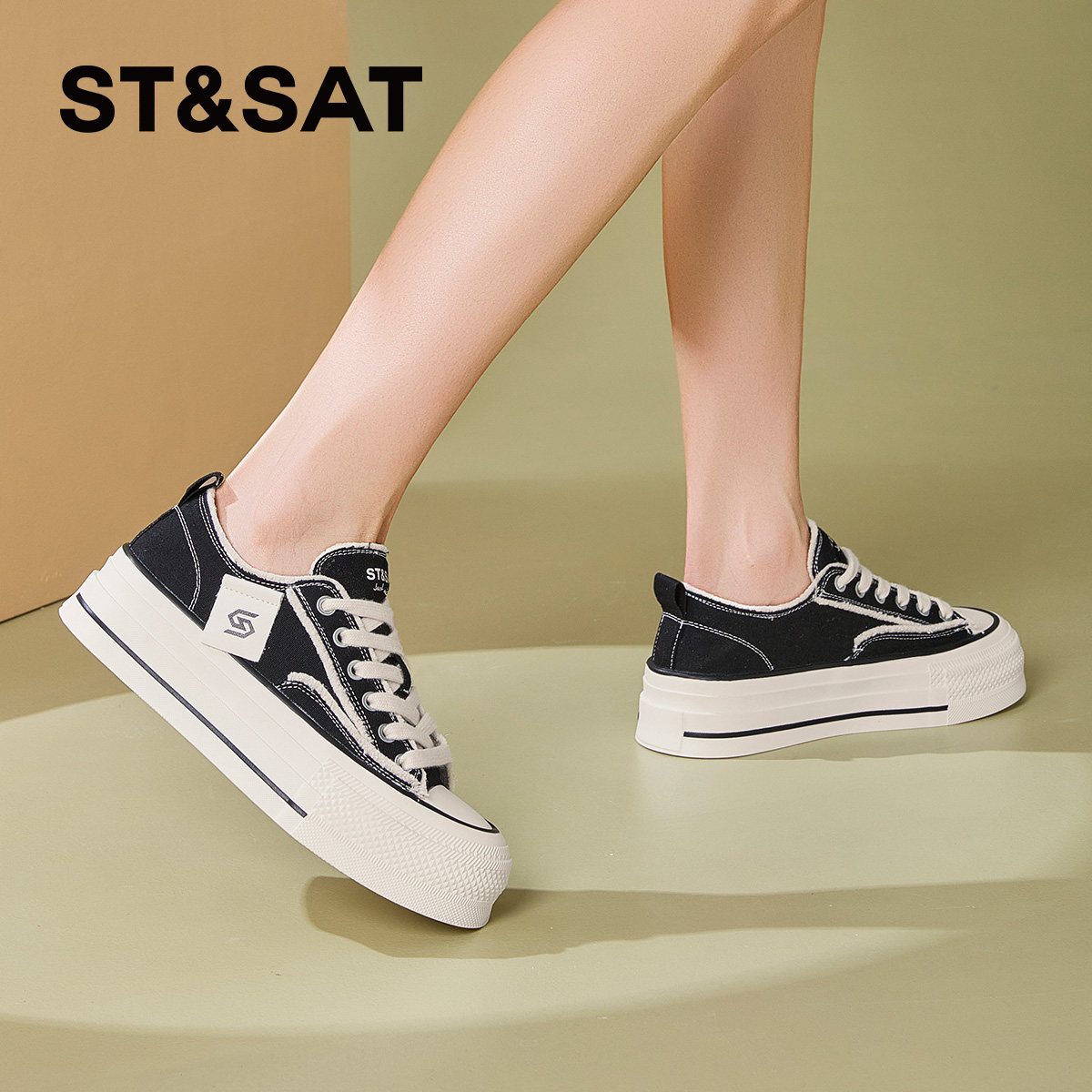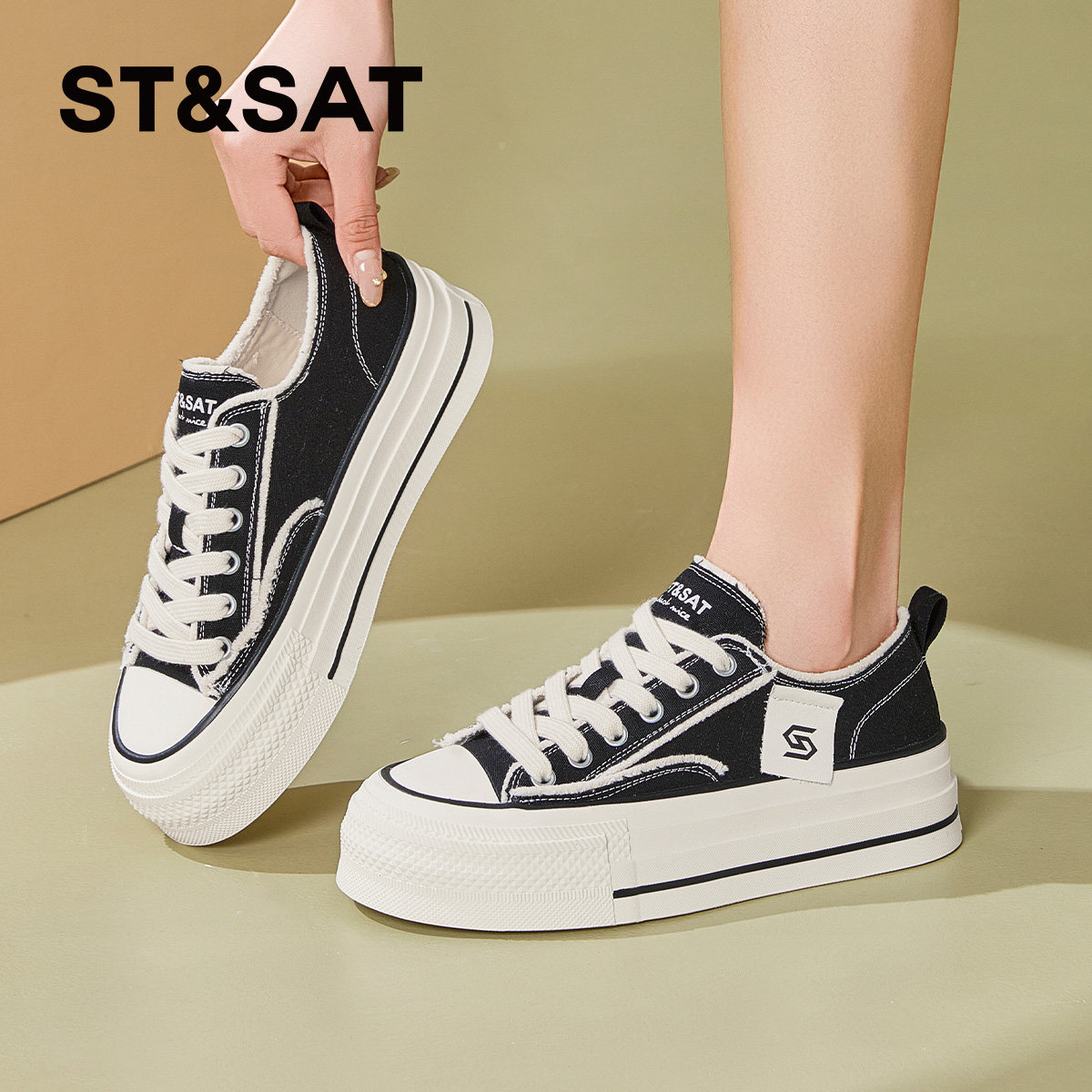 星期六厚底帆布鞋女2025春季新款小个子百搭通勤休闲板鞋增高4CM