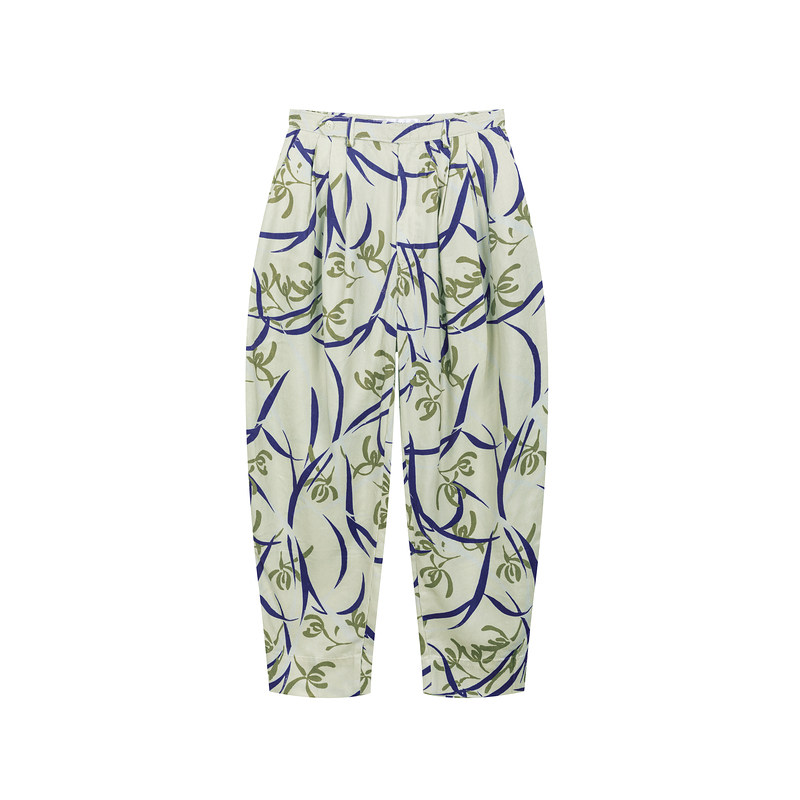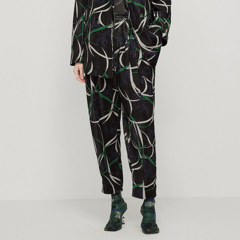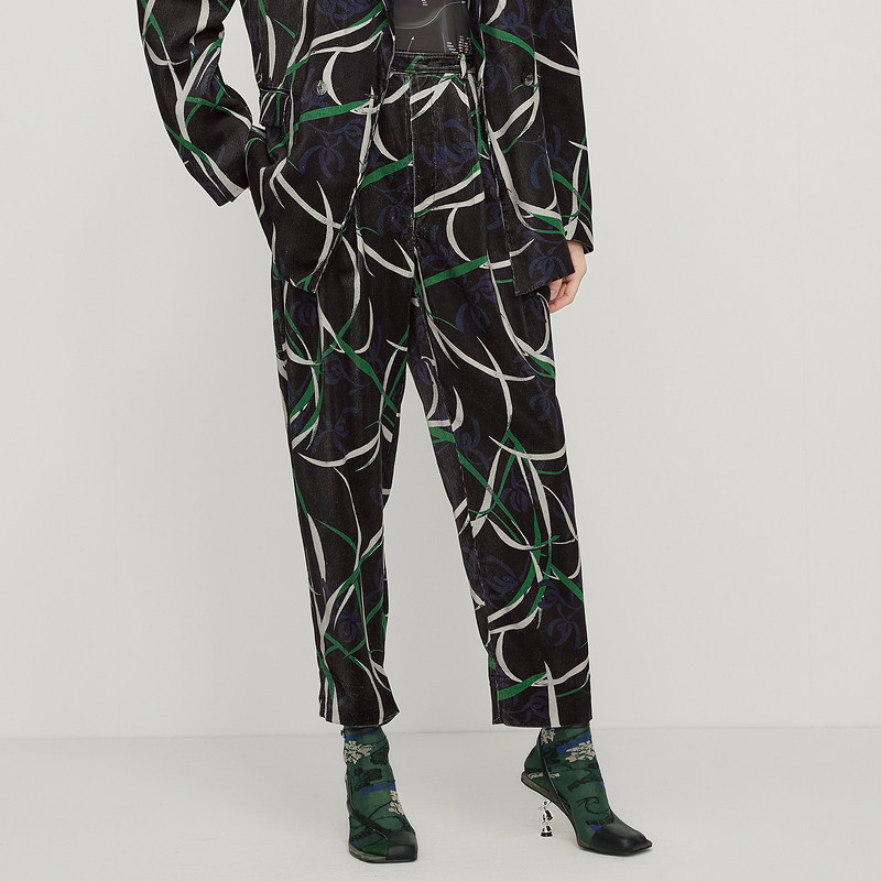 JNBY/江南布衣折扣春夏休闲裤女印花宽松舒适复古简约西装裤锥形
