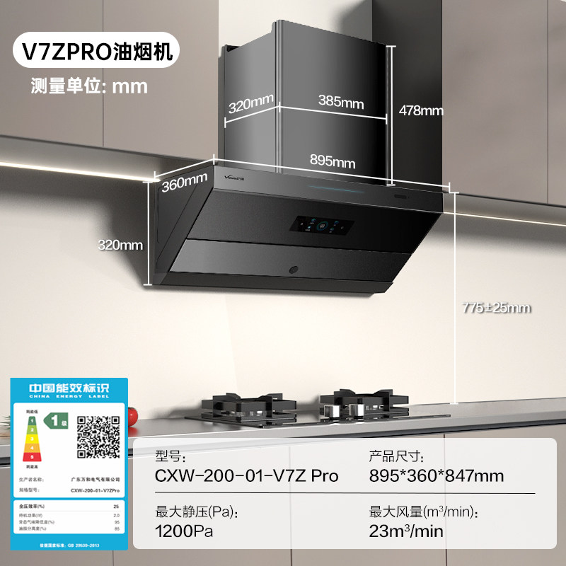 【万和国补套装】无痕小双翼超薄平嵌大吸力油烟机灶具套装V7ZPRO