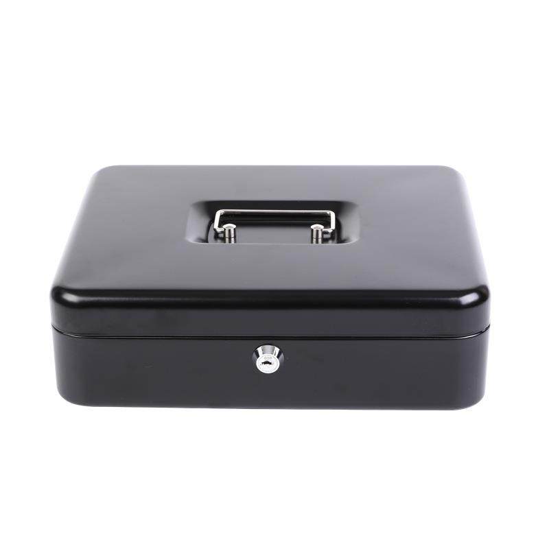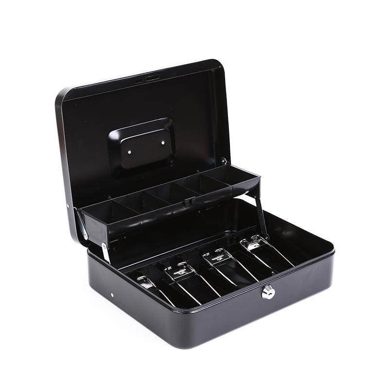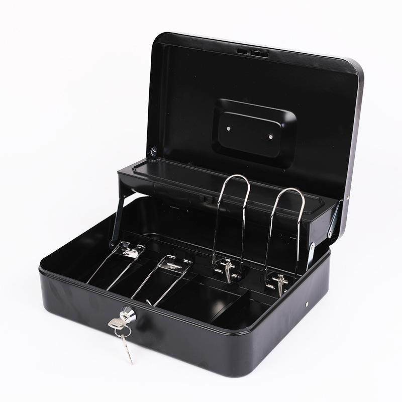 手提保险箱带锁金属零钱收纳收银箱钥匙盒便携双层收银零钱箱
